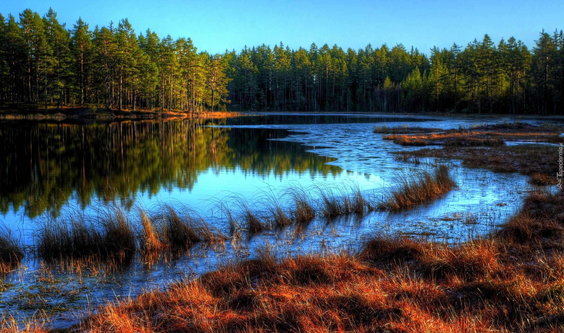 Edytor tapety: Rzeka, Las, Trawy, Jesień