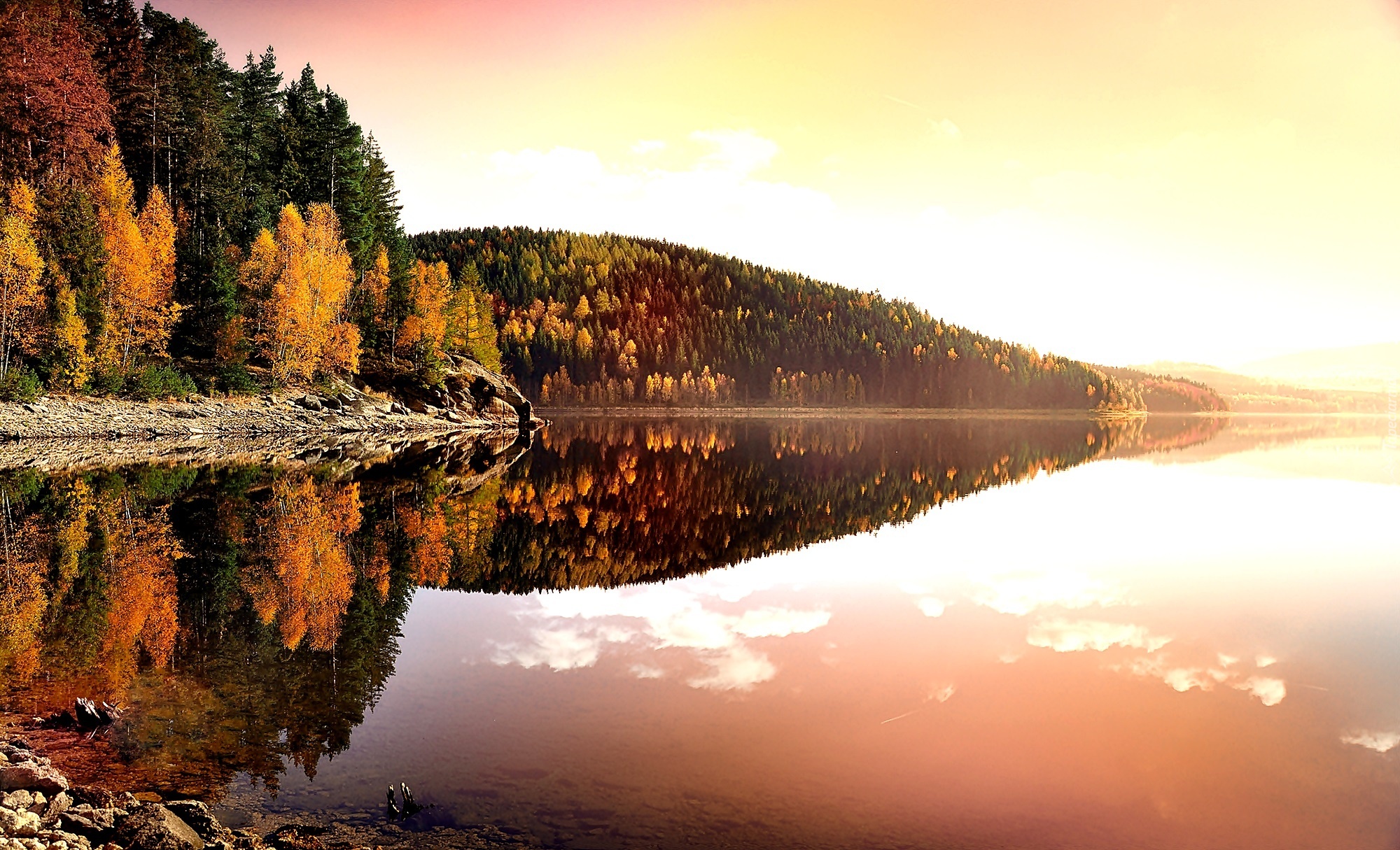 Edytor tapety: Jezioro, Lasy, Odbicie, Jesień