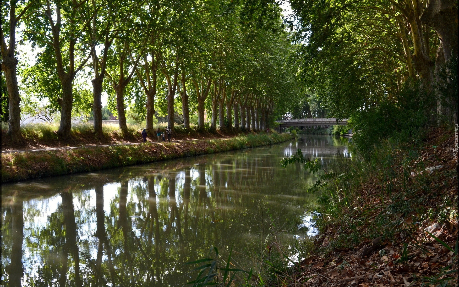 Edytor tapety: Rzeka, Drzewa, Spacerowicze, Most