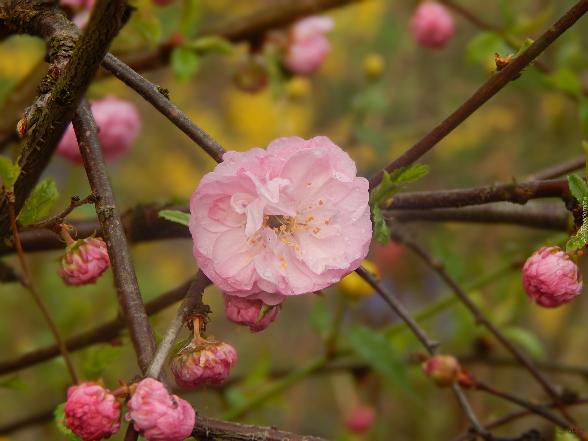 Edytor tapety: Różowe, Kwiatki, Gałązki, Migdałek