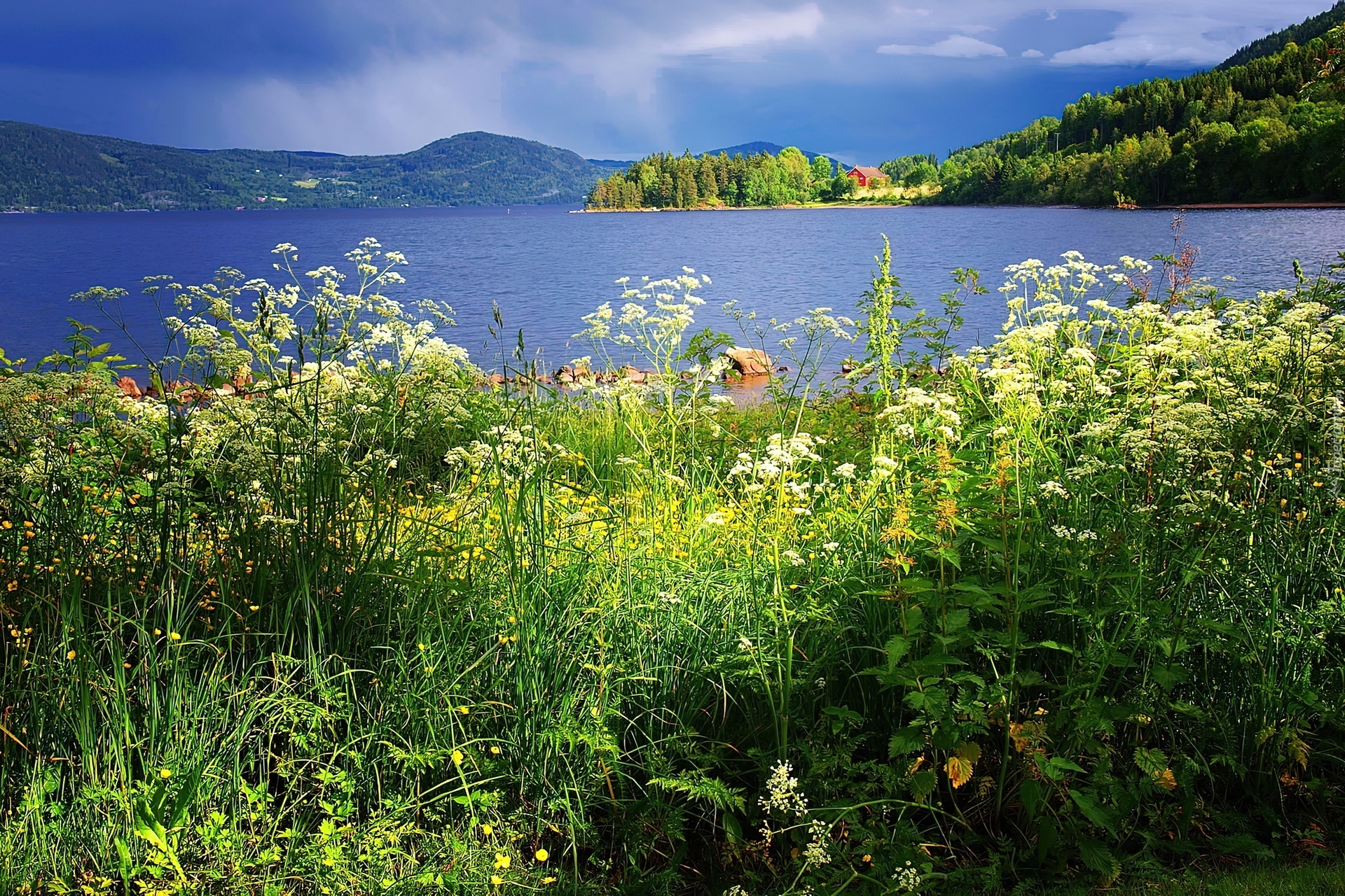 Edytor tapety: Lato,Góry, Jezioro, Dom, Polne, Rośliny