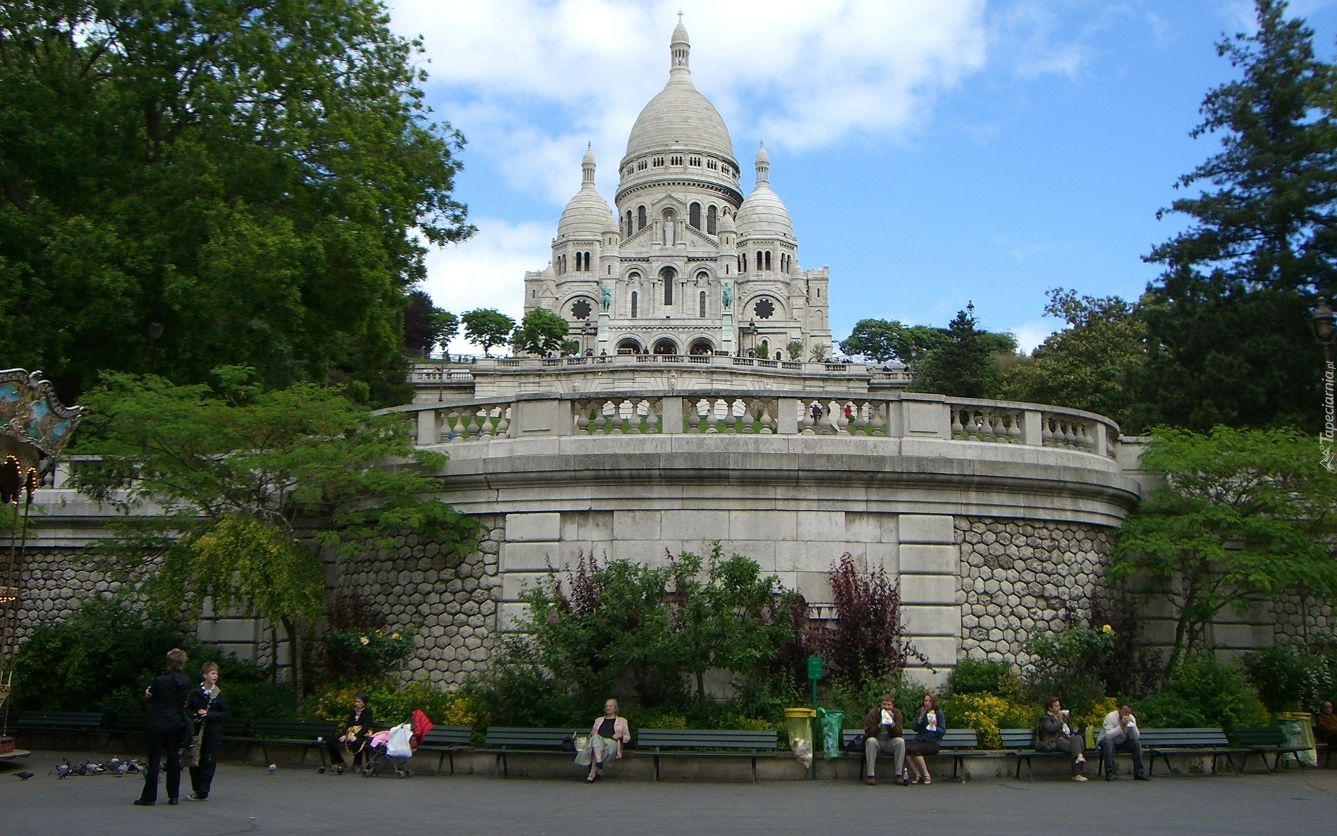 Edytor tapety: Katedra, Drzewa, Ławki, Turyści