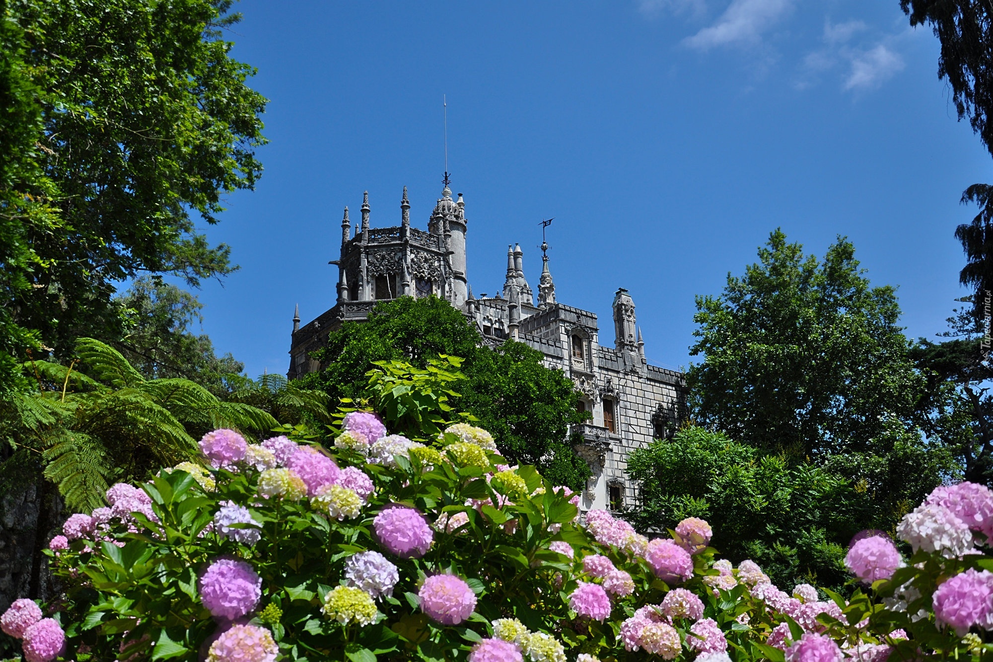 Edytor tapety: Pałac, Hortensje, Drzewa