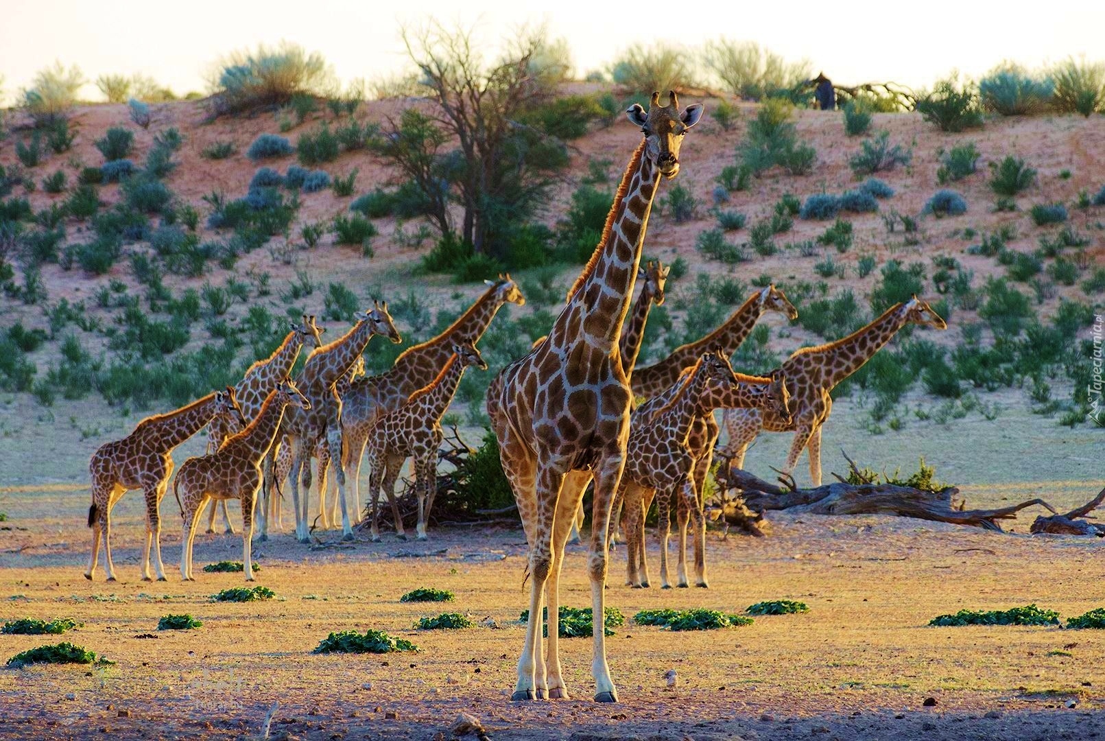 Edytor tapety: Żyrafy, Stado, Roślinność