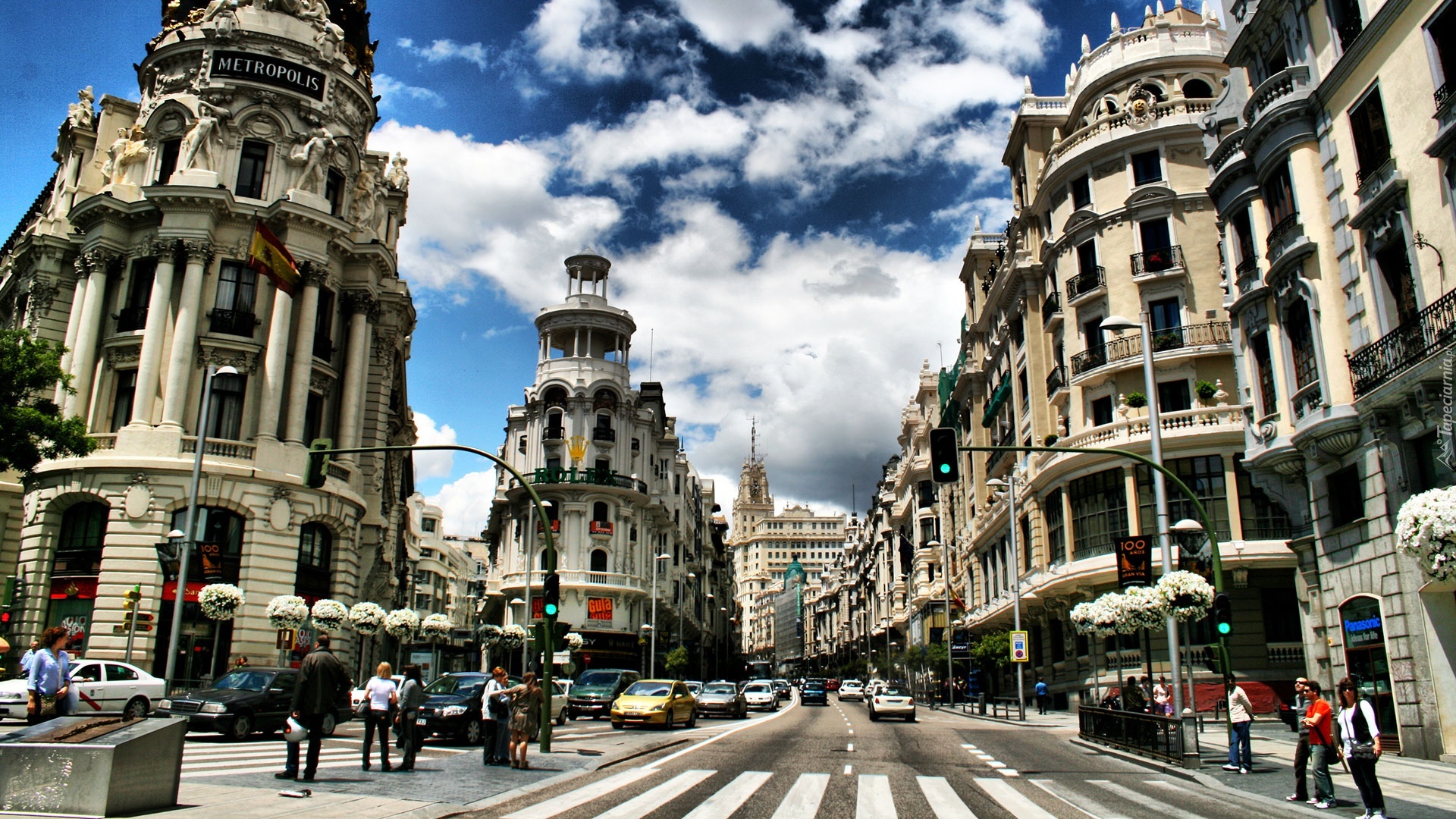 Edytor tapety: Hiszpania, Madryt, Ulica, Ludzie, Samochody