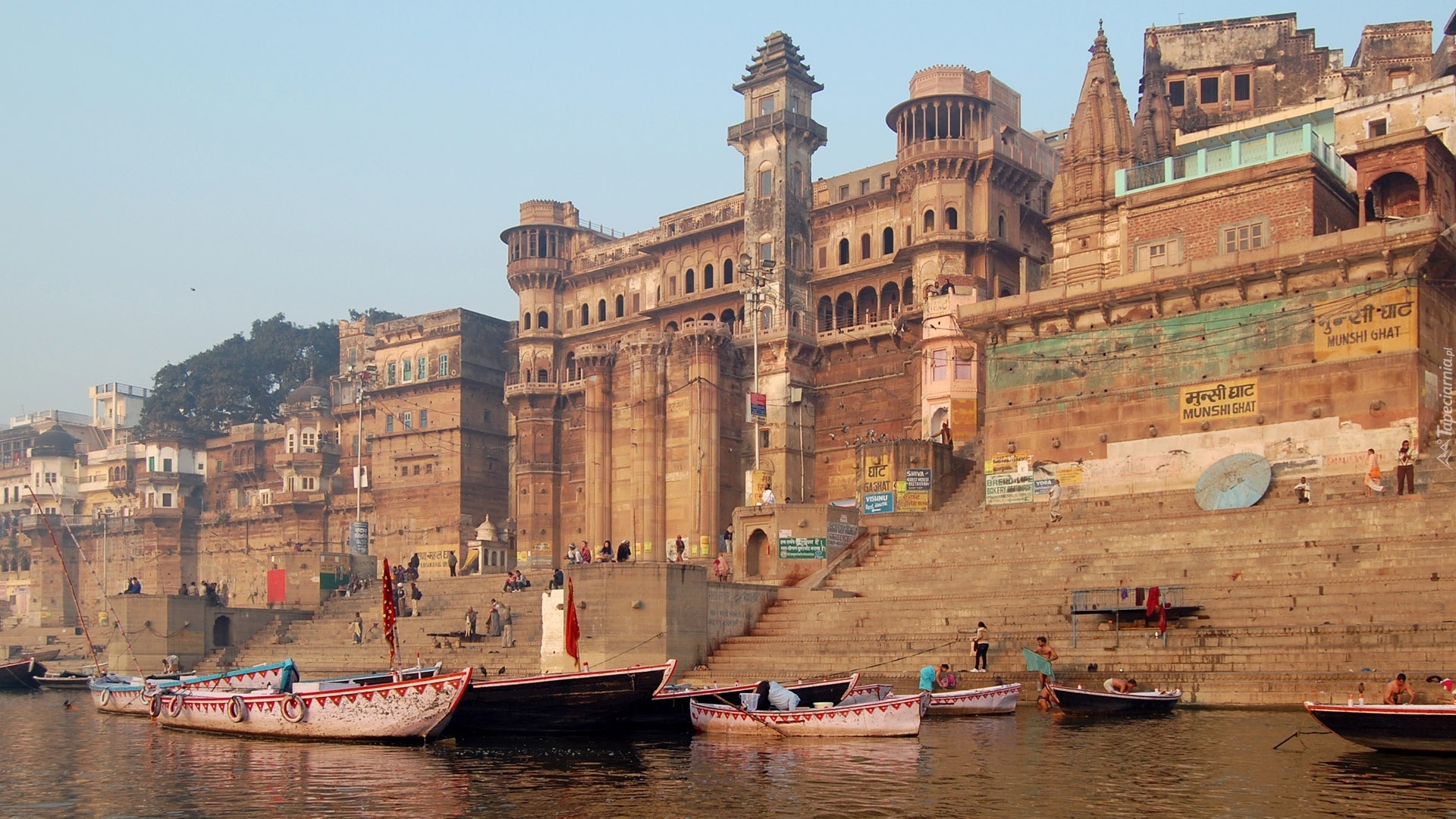 Edytor tapety: Indie, Varanasi, Pałac, Rzeka, Ludzie, Łódki