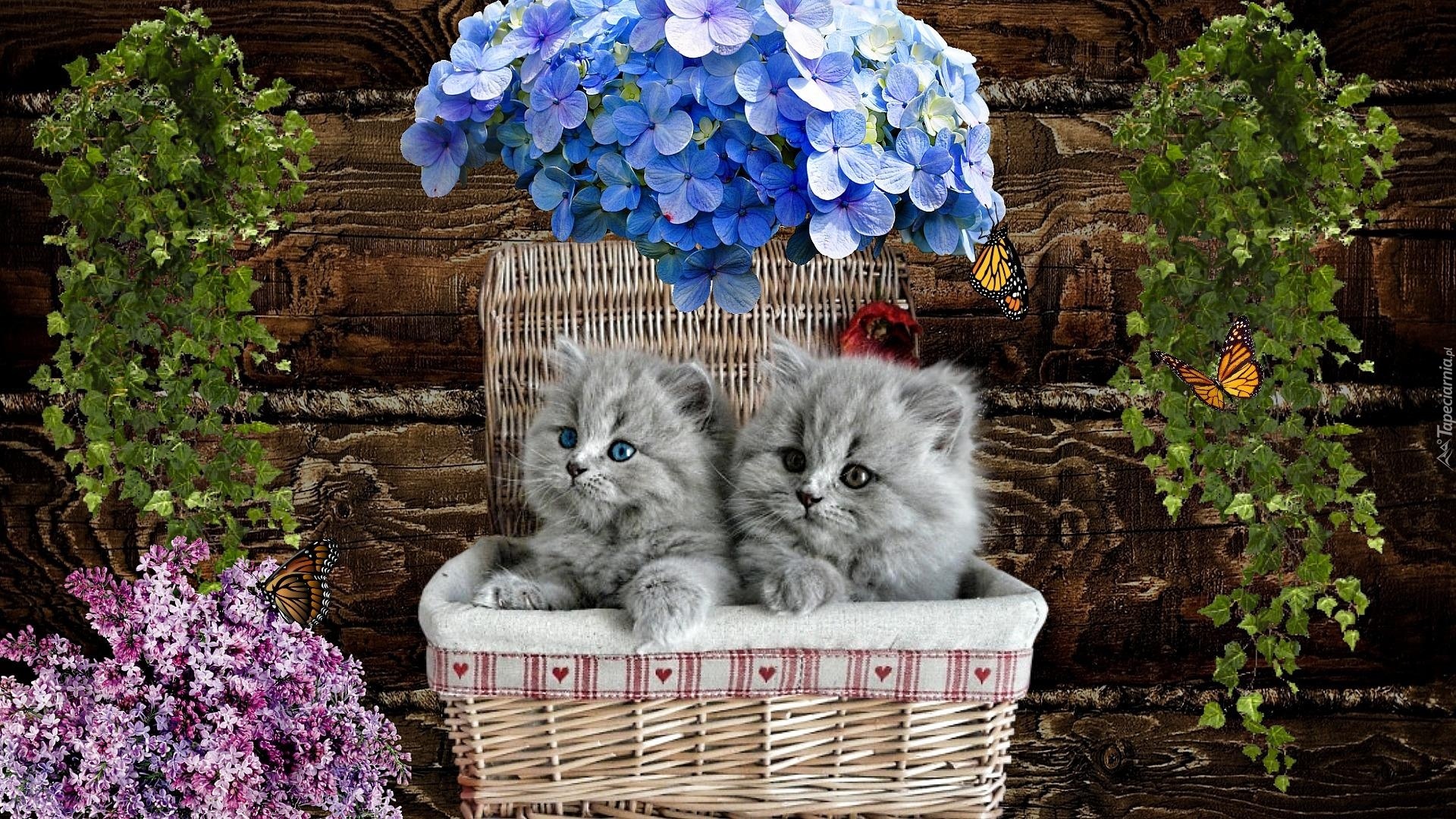 Edytor tapety: Słodkie, Maleńkie, Kotki, Kosz, Kwiaty