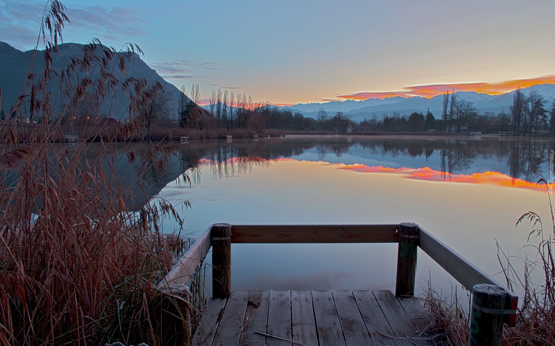 Edytor tapety: Jezioro, Pomost, Zmierzch