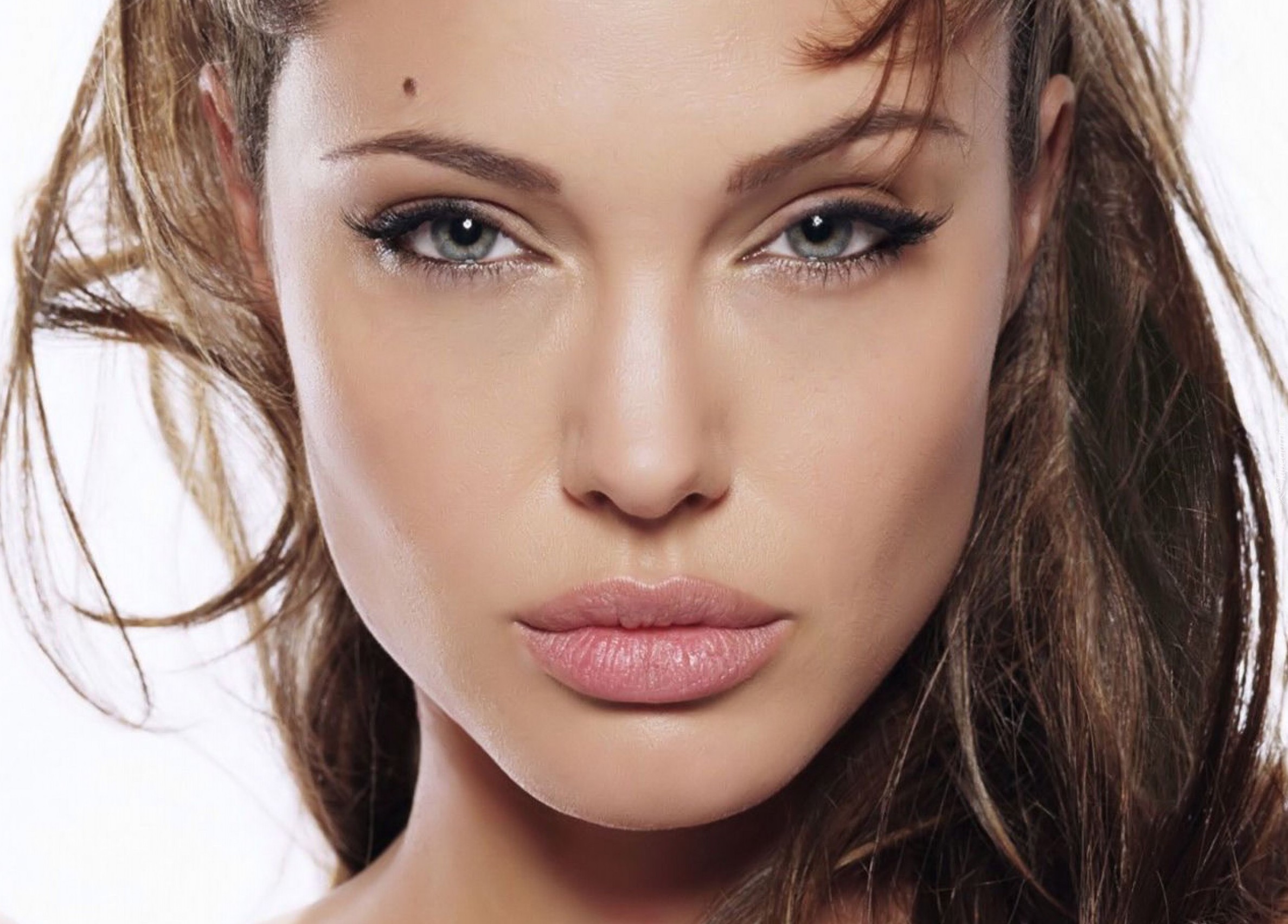 Edytor tapety: Angelina Jolie, niebieskie oczy, różowe usta