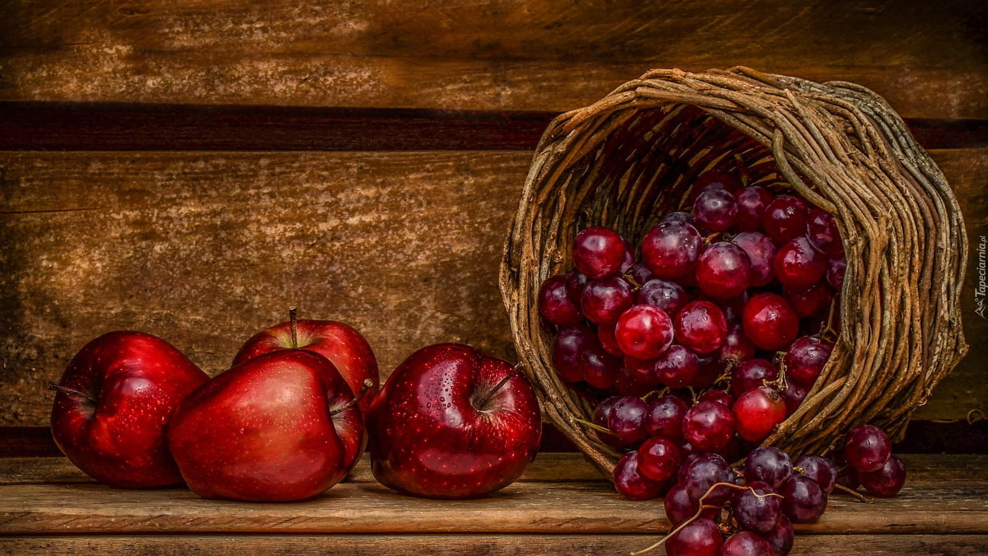 Edytor tapety: Jabłka, Winogrona, Koszyk
