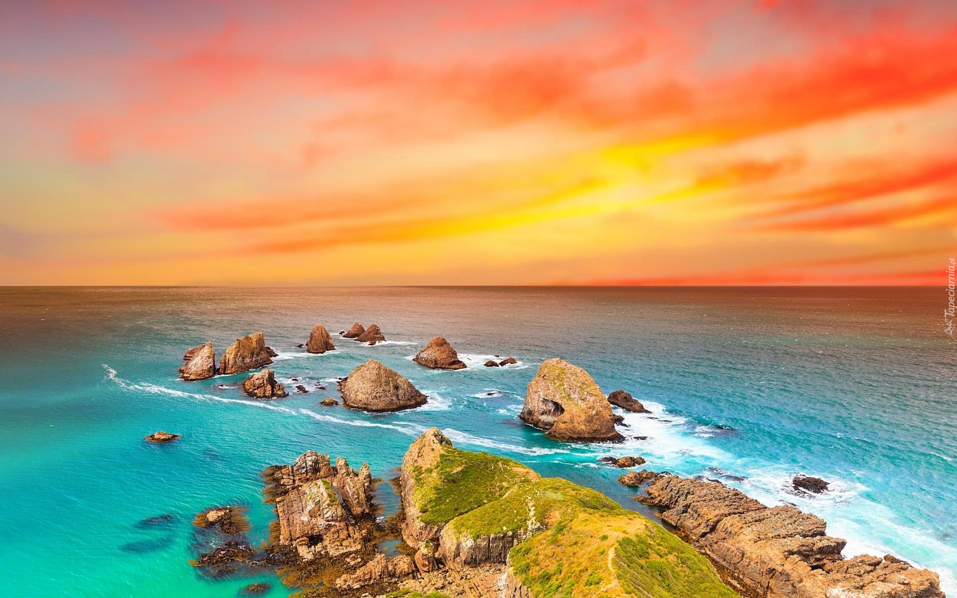 Edytor tapety: Morze, Skały, Zachód Słońca