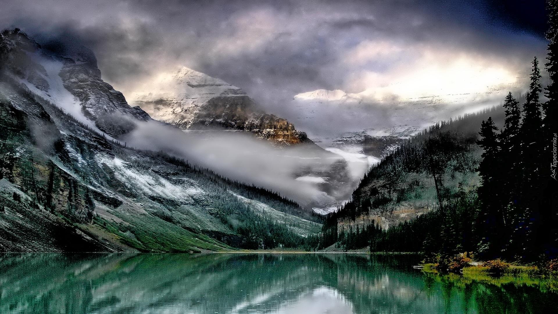 Edytor tapety: Jezioro, Góry, Mgła