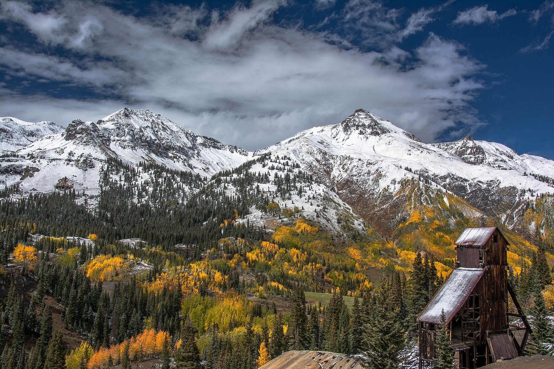 Edytor tapety: Góry, Śnieg, Jesień, Lasy, Budowla