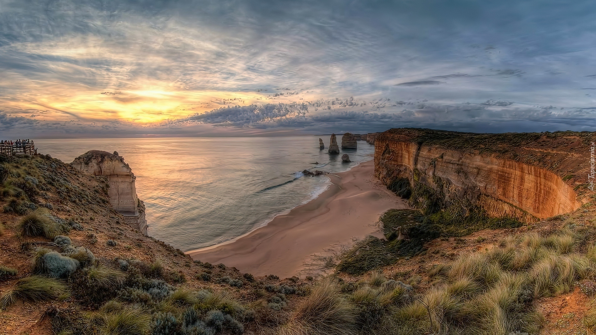 Edytor tapety: Morze, Zachód, Słońca, Plaża, Skały