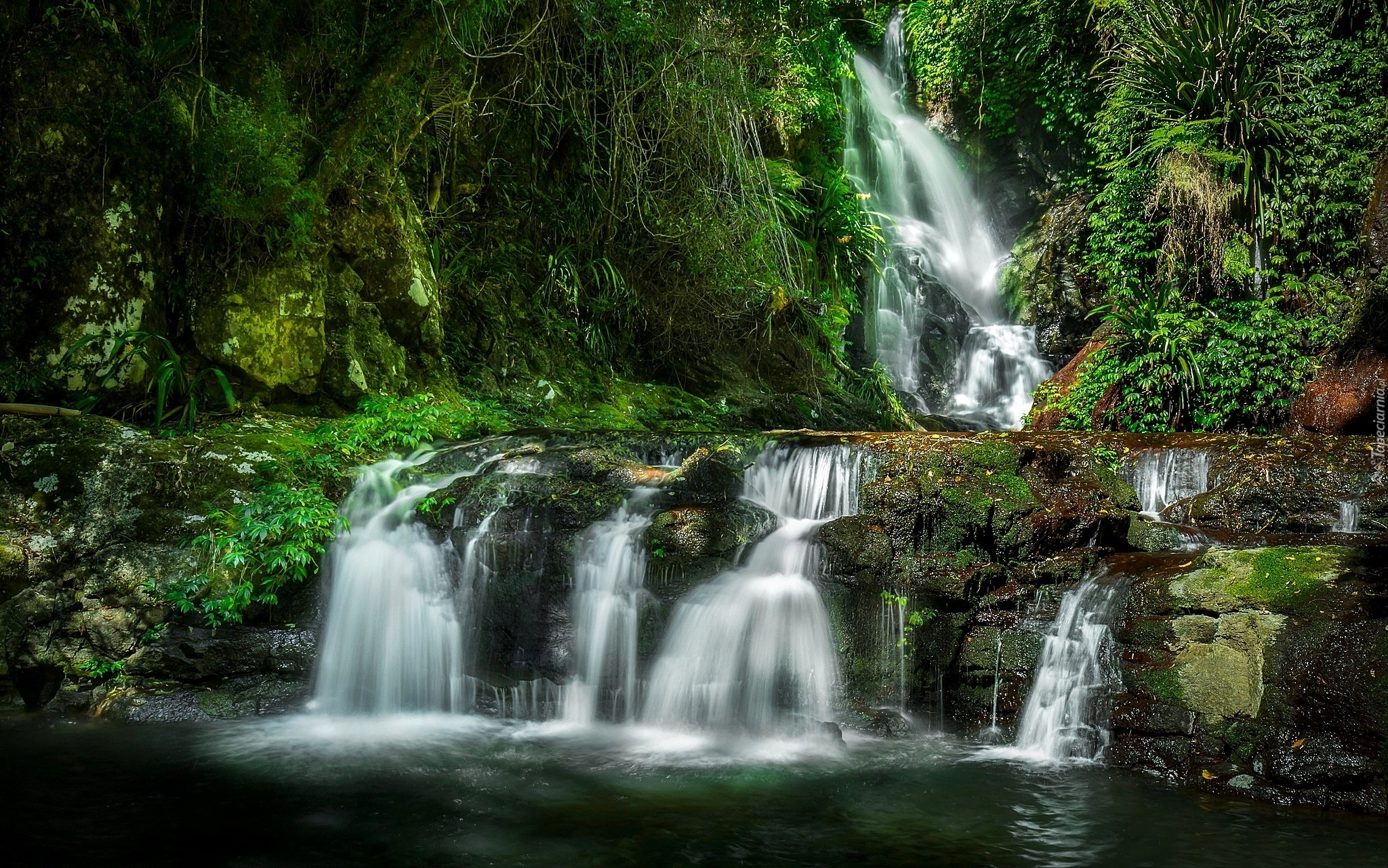 Edytor tapety: Las, Wodospad, Skały