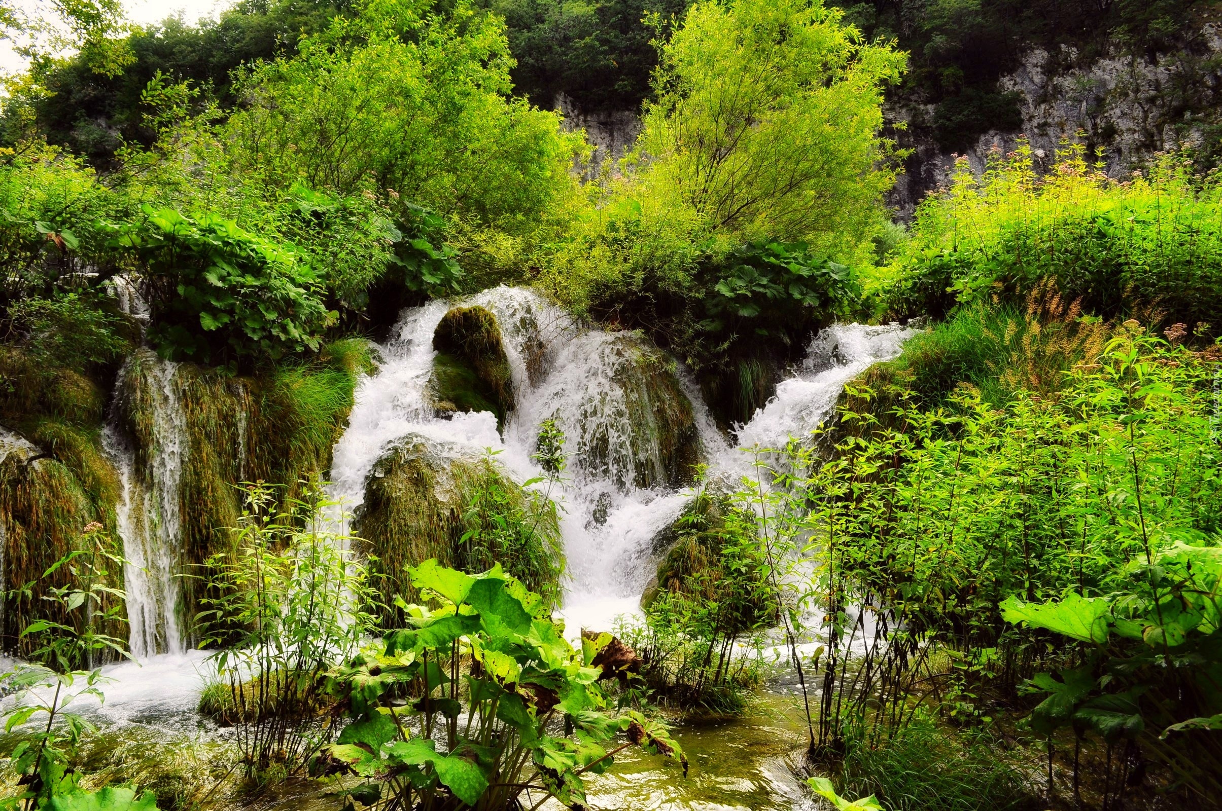 Edytor tapety: Wodospad, Skały, Rośliny, Zieleń