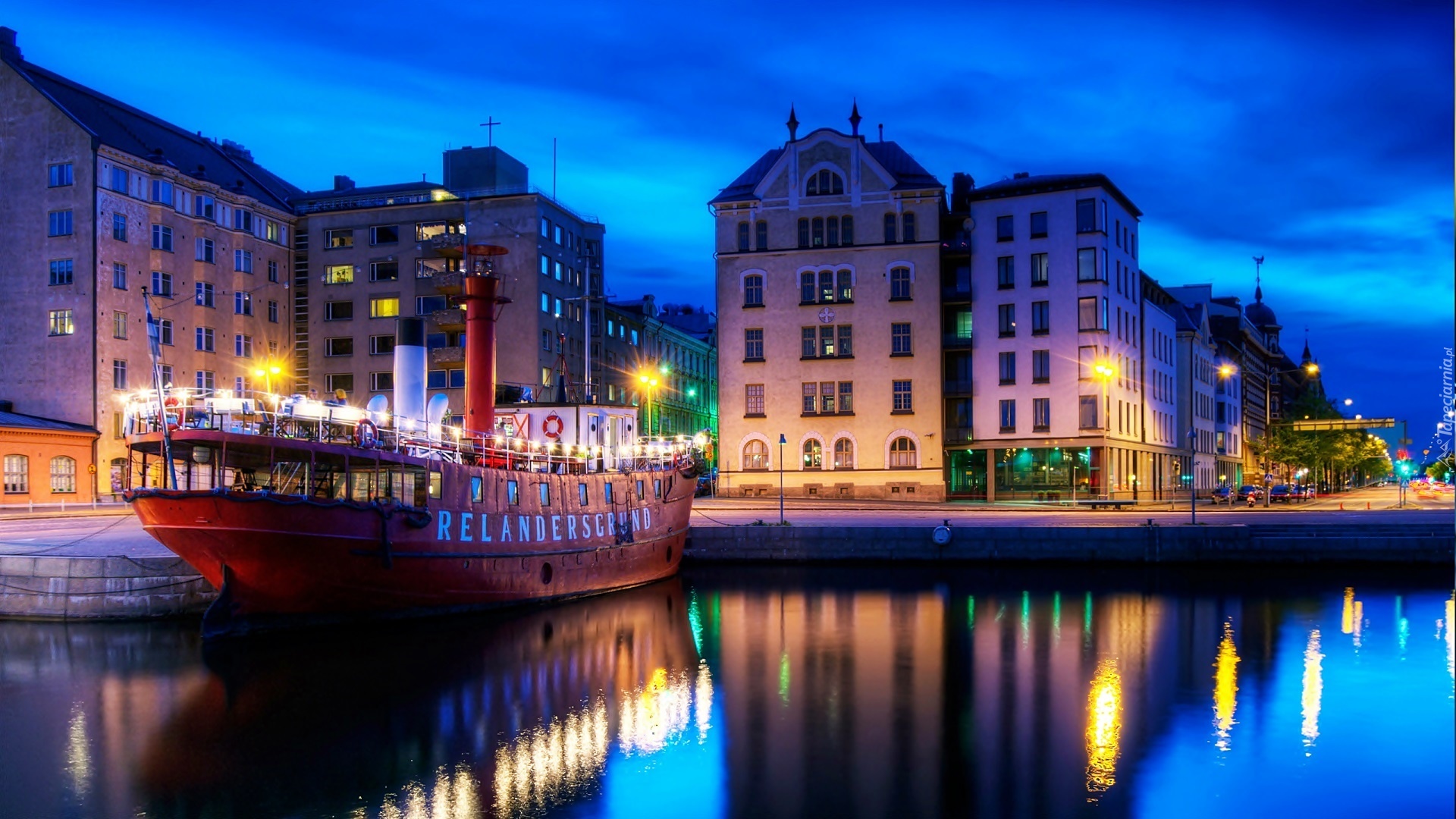 Edytor tapety: Helsinki, Nocą, Domy, Nabrzeże, Wycieczkowy, Statek