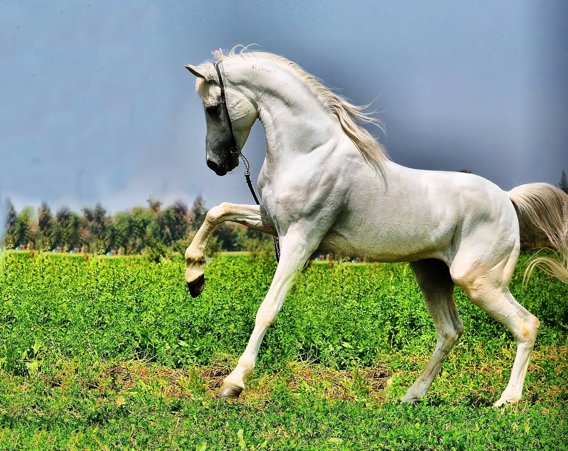 Edytor tapety: Biały, Koń , Łąka