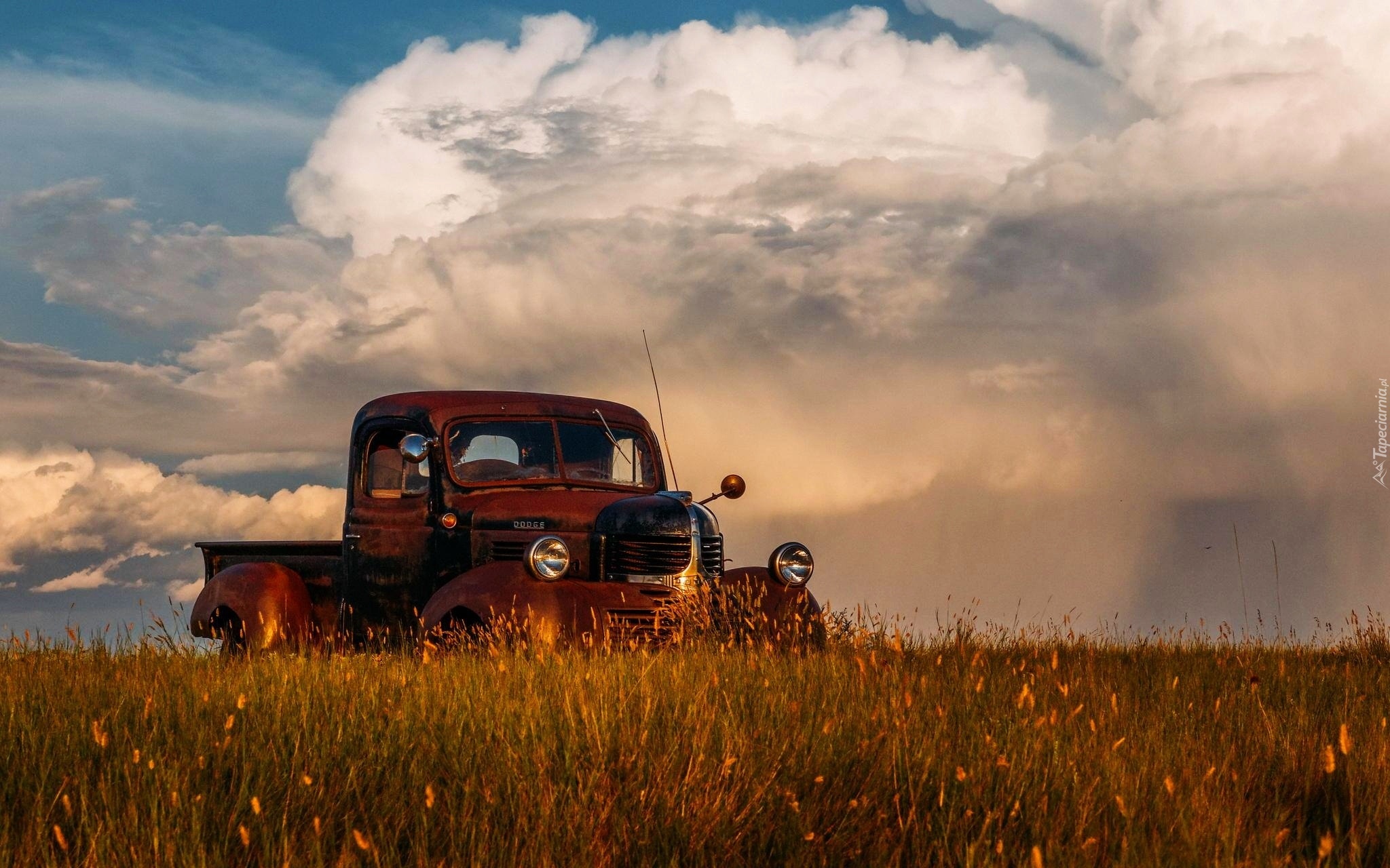 Edytor tapety: Półciężarówka, Łąka, Chmury