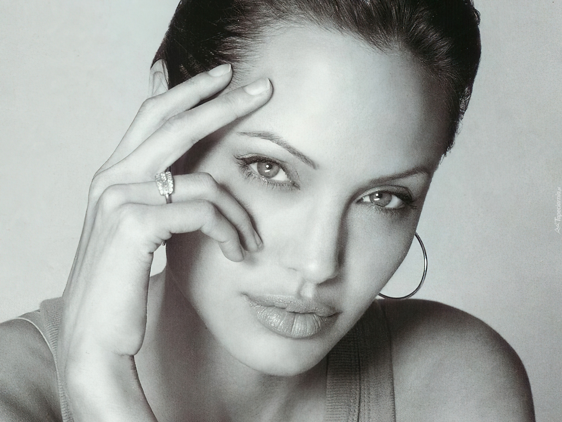 Edytor tapety: Angelina Jolie, twarz, ręka