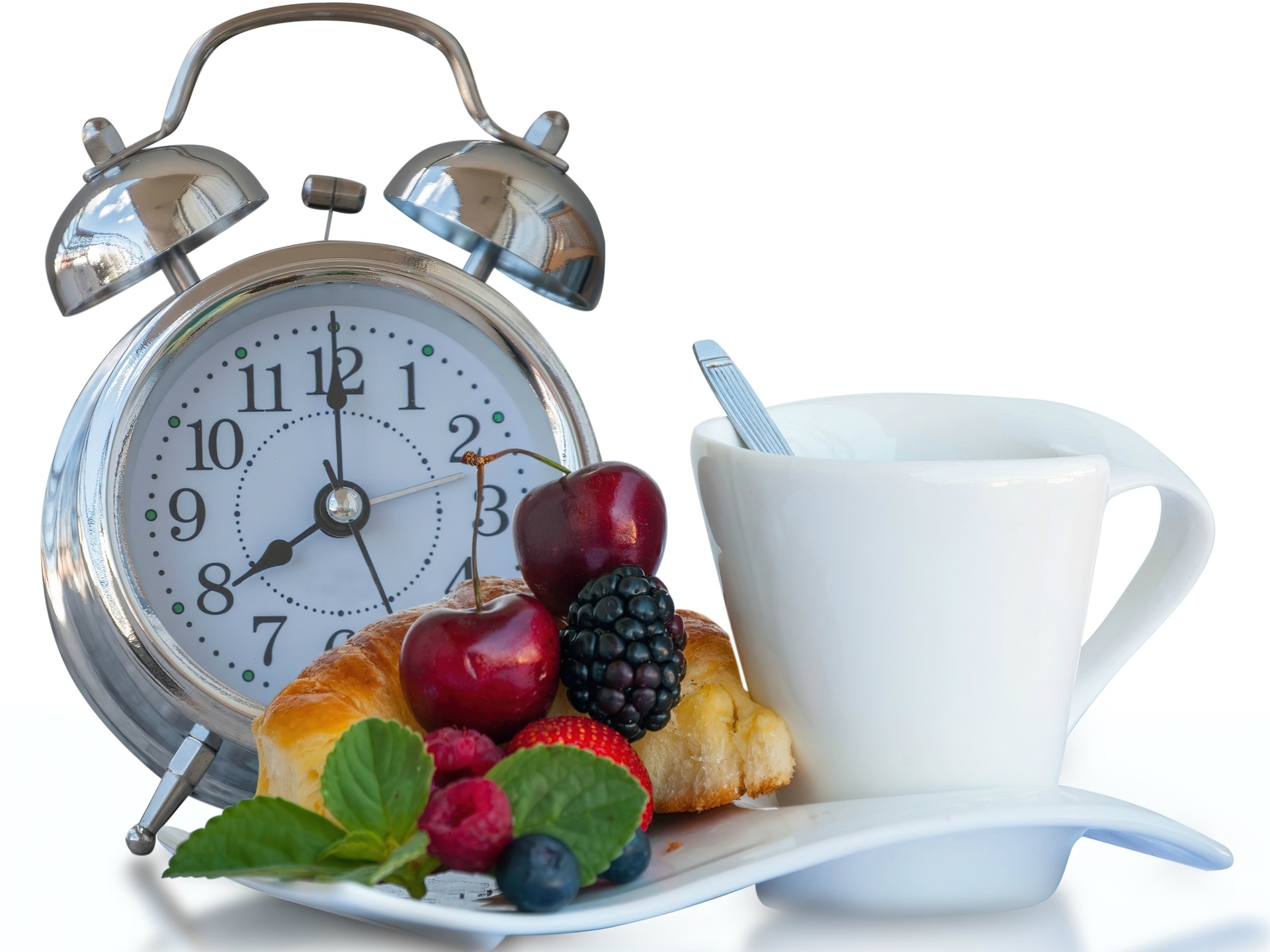 Edytor tapety: Budzik, Owoce, Herbata, Śniadanie