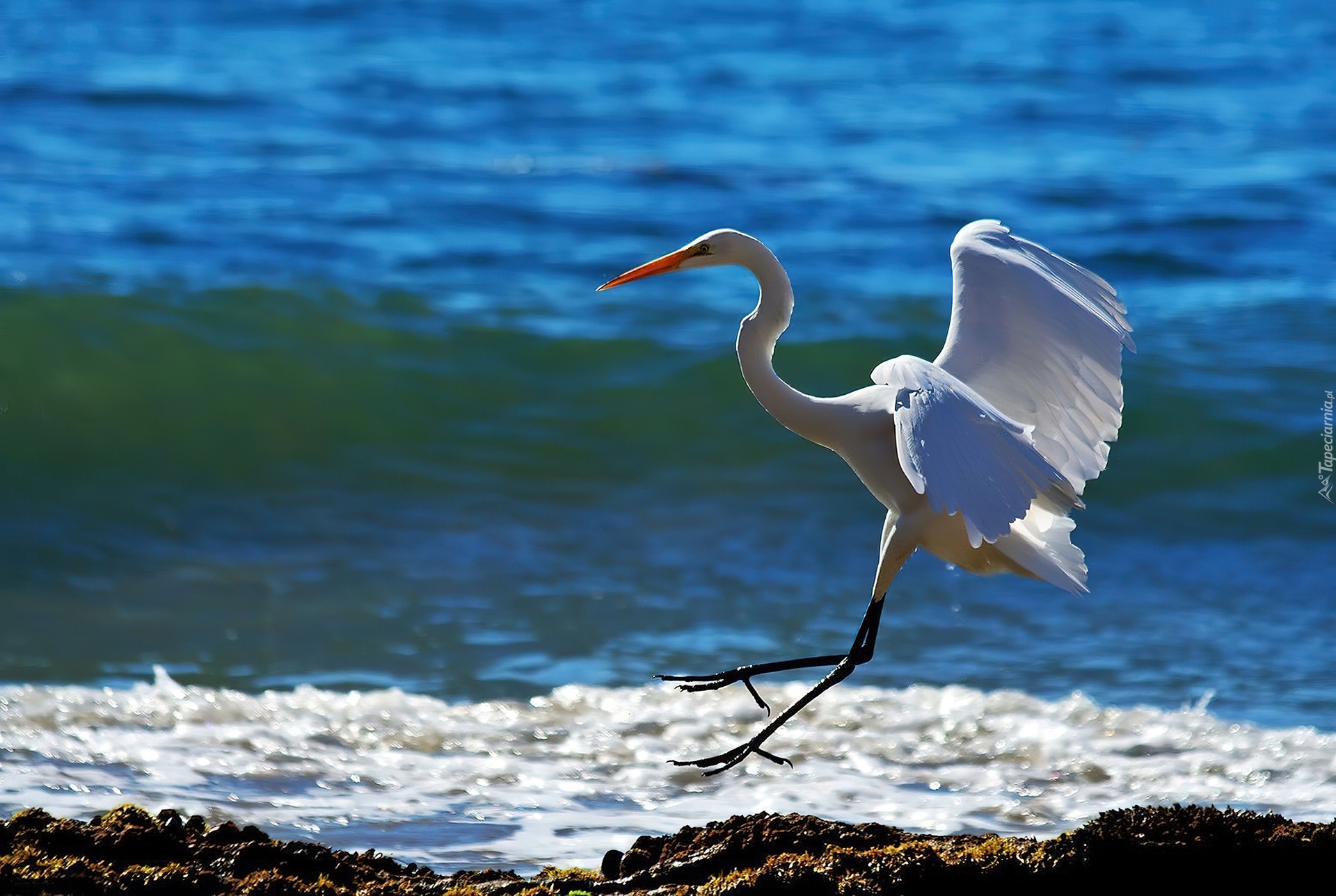 Edytor tapety: Czapla, Morze