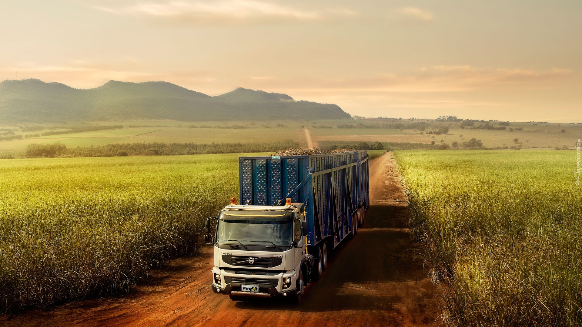 Edytor tapety: Ciężarówka, Volvo, Droga, Pole