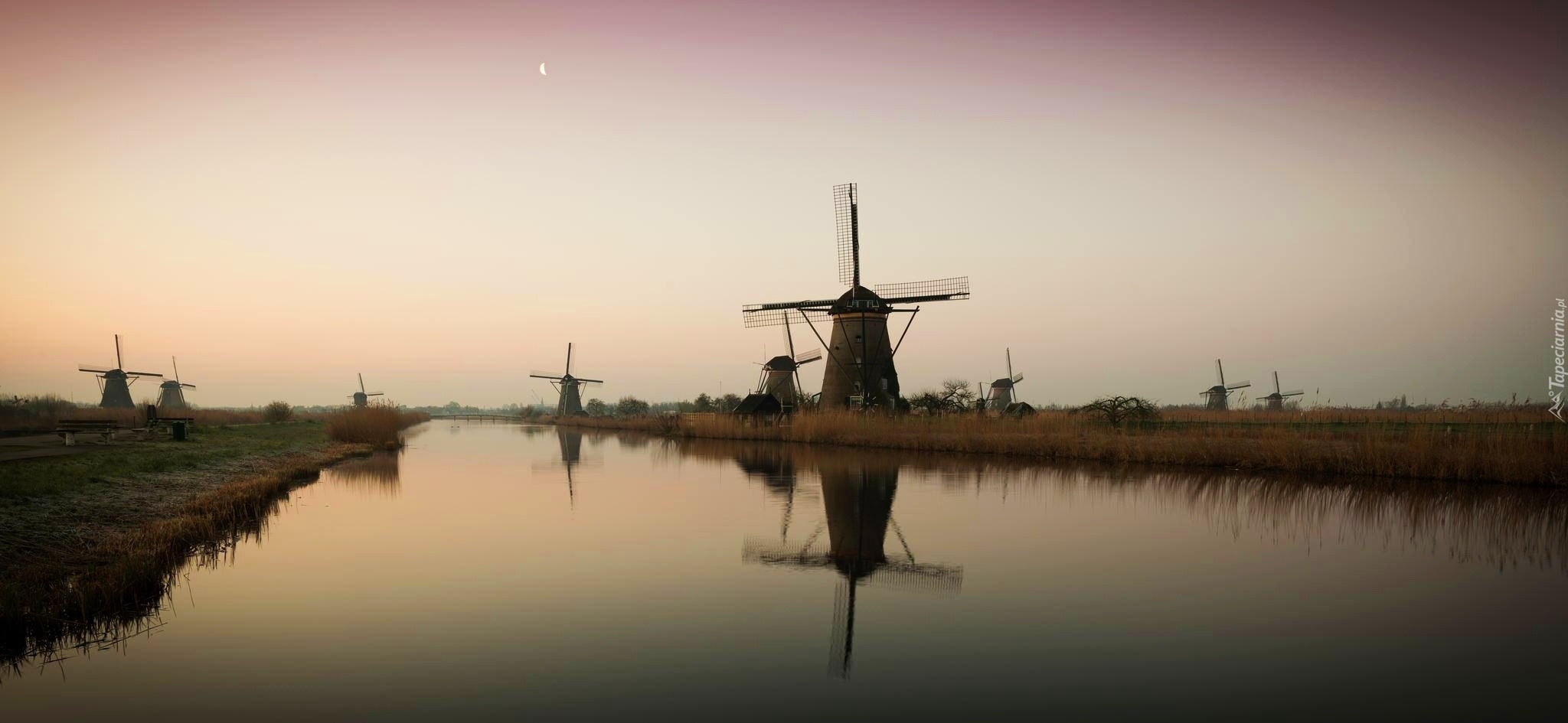 Edytor tapety: Wiatraki, Rzeka