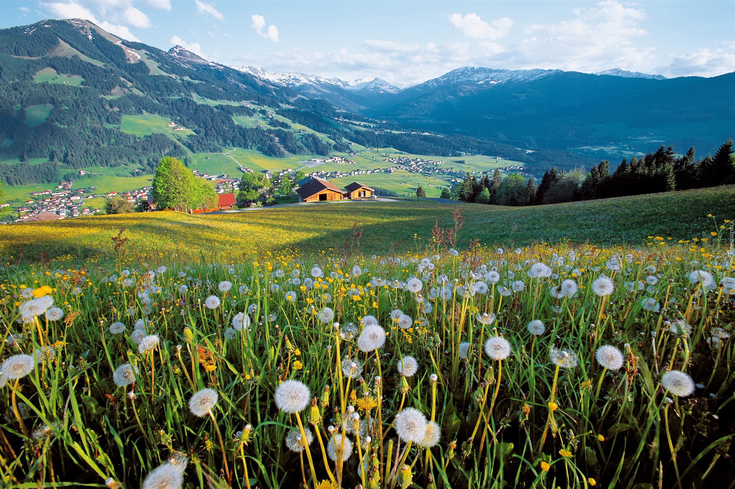 Edytor tapety: Góry, Łąki, Dmuchawce, Wieś