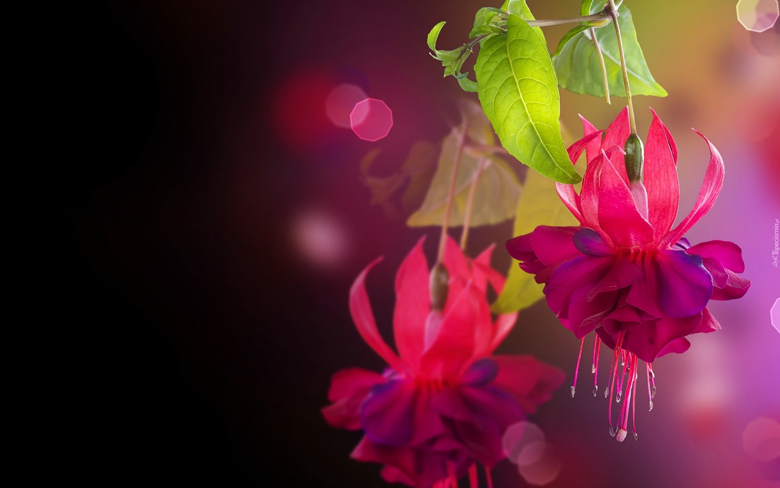 Edytor tapety: Kwiat, Liście, Bokeh, Fuksja