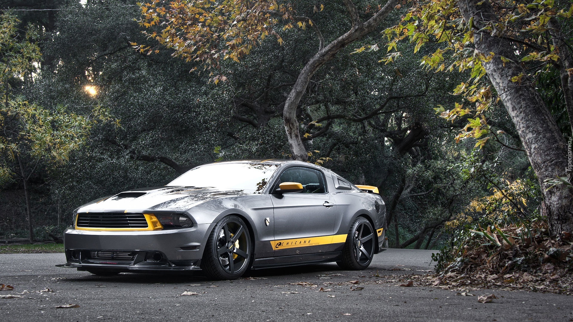 Edytor tapety: Ford, Mustang, Droga, Drzewa