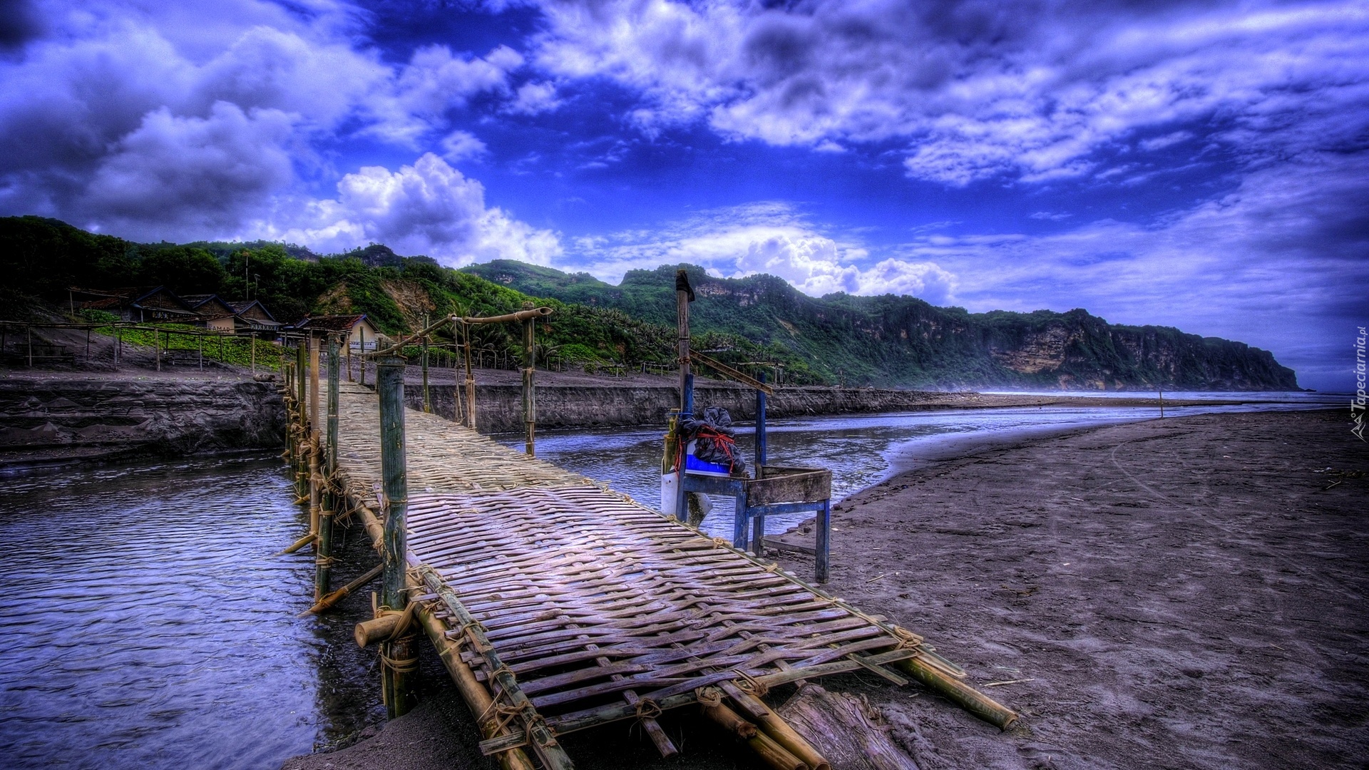 Edytor tapety: Rzeka, Most, Niebo, Chmury
