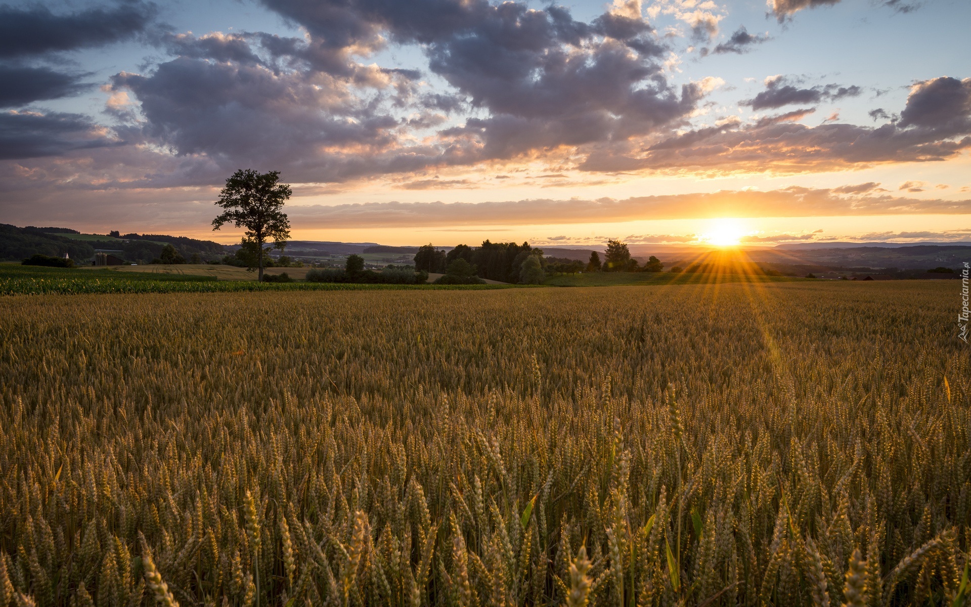 Edytor tapety: Pole, Zachód Słońca, Chmury