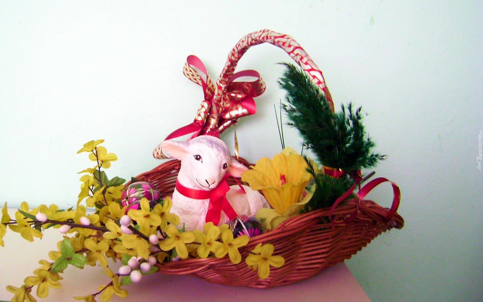 Edytor tapety: Baranek, Pisanki, Gałązki, Koszyczek, Wielkanocny