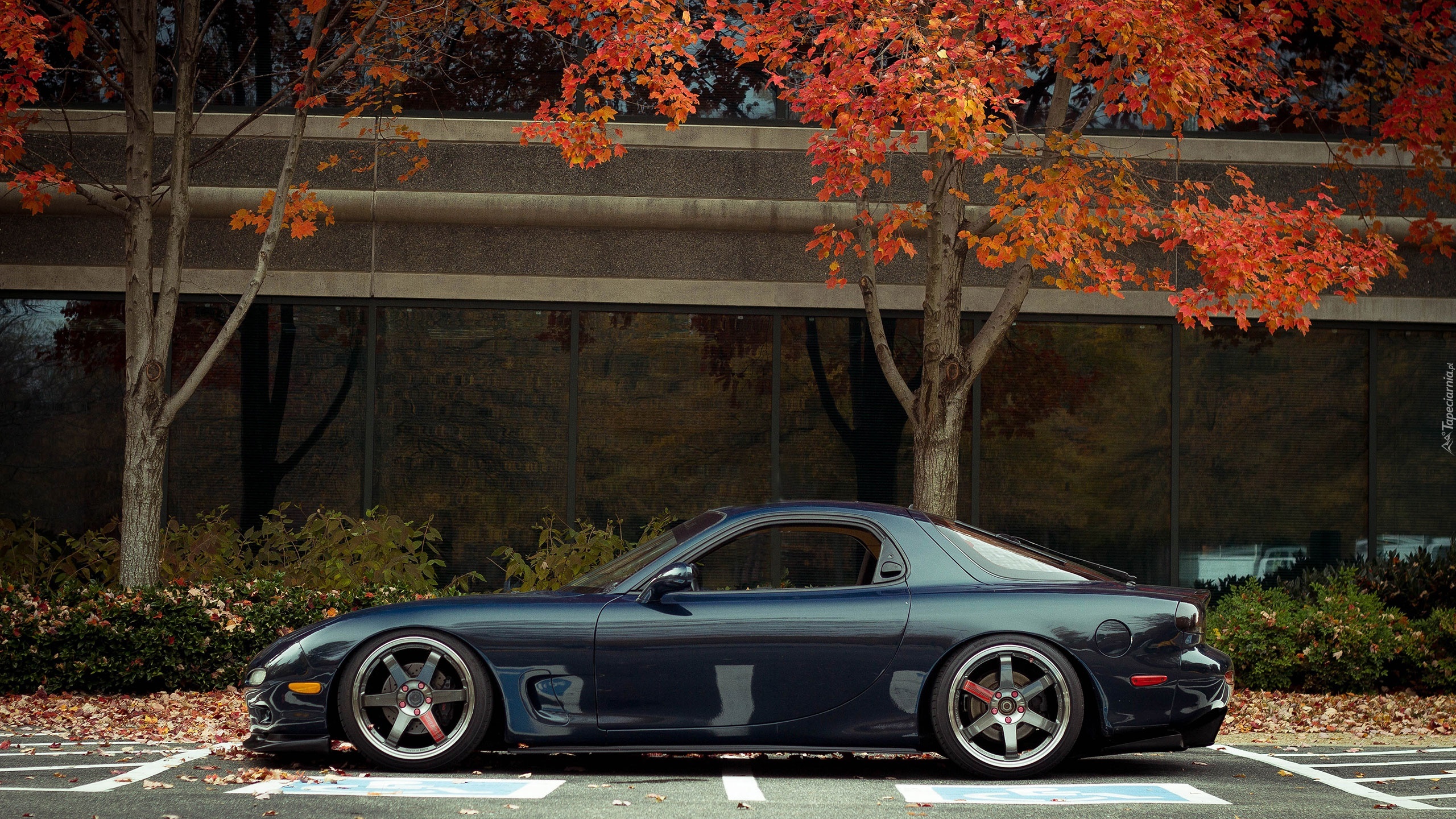 Edytor tapety: Mazda, RX-7, Parking, Drzewa