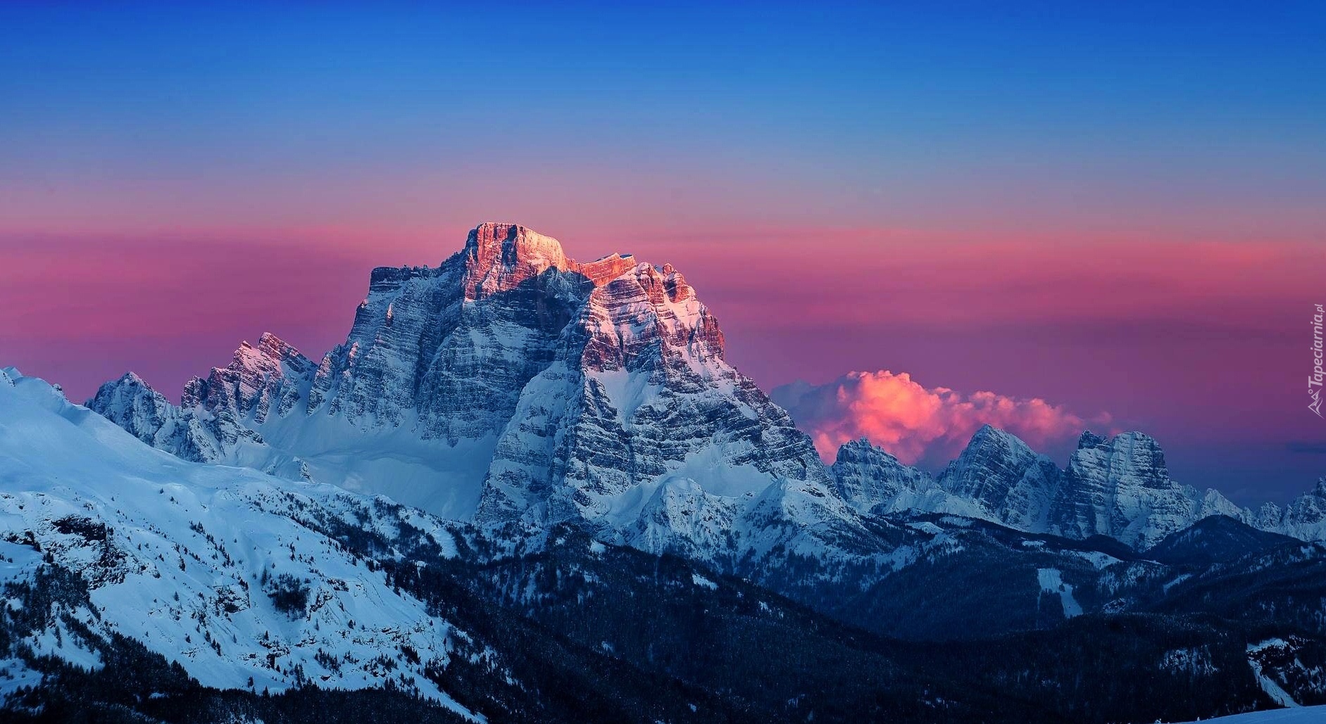 Edytor tapety: Wschód Słońca, Śnieg, Góry