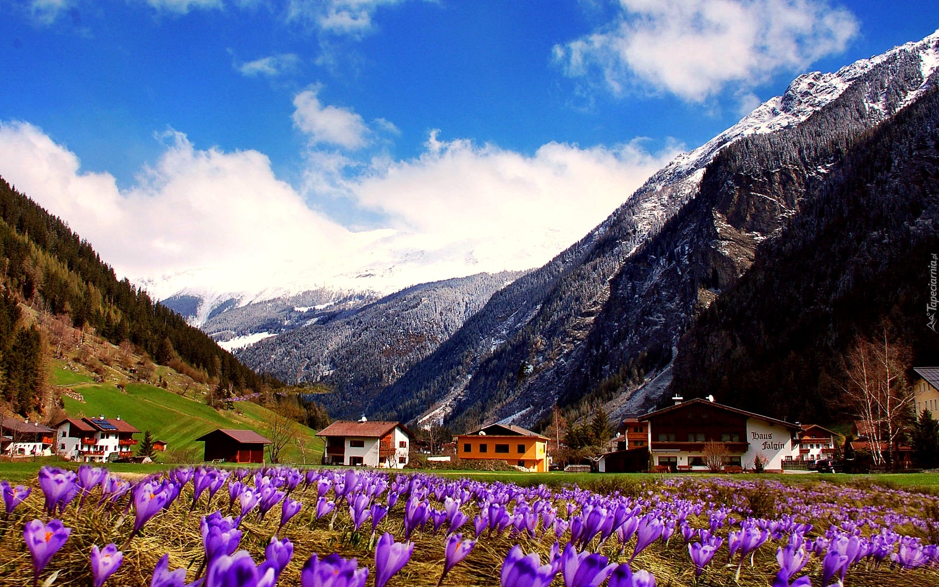Edytor tapety: Góry, Wiosna, Łąka, Krokusy