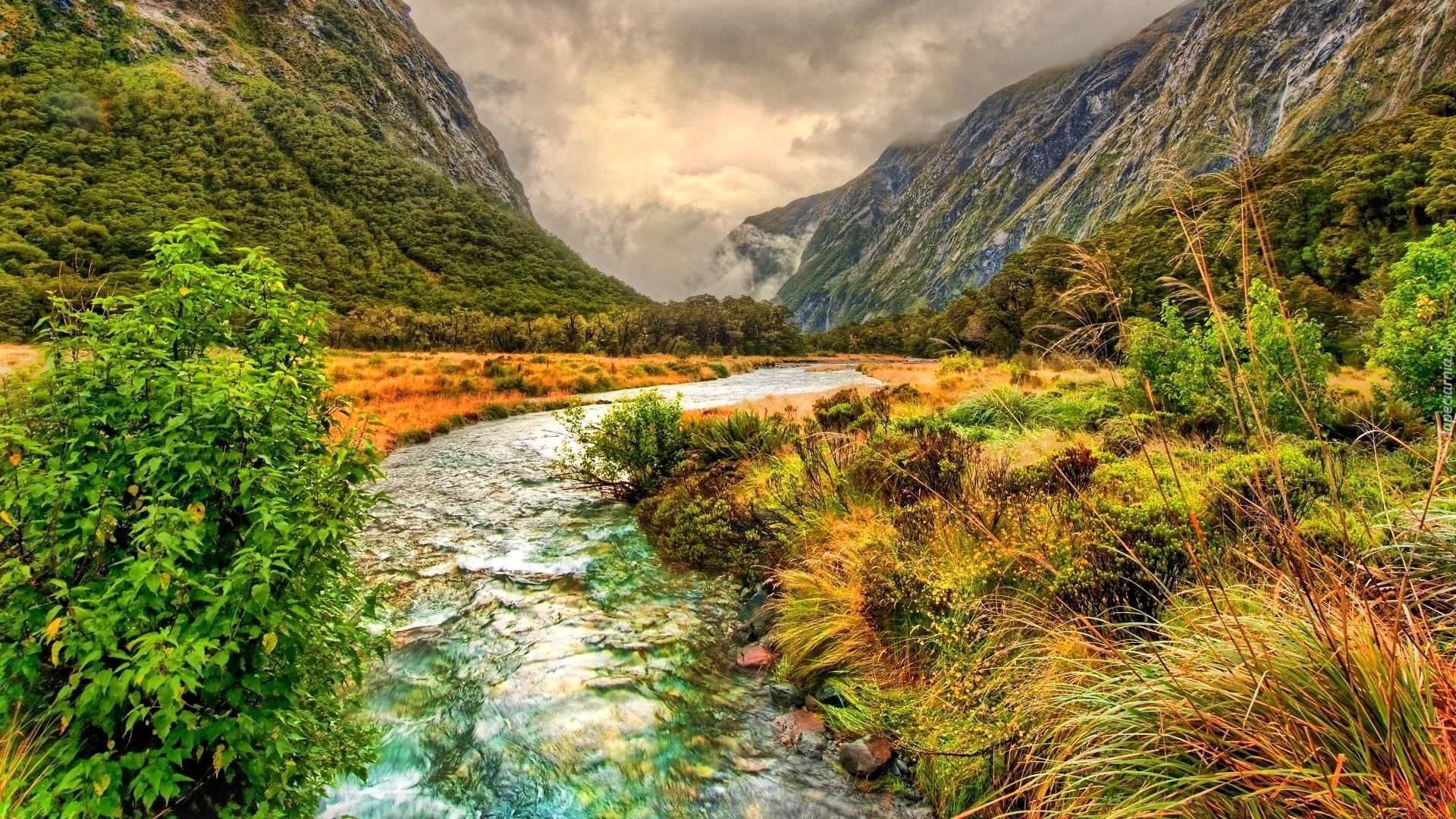 Edytor tapety: Rzeka, Góry, Rośliny
