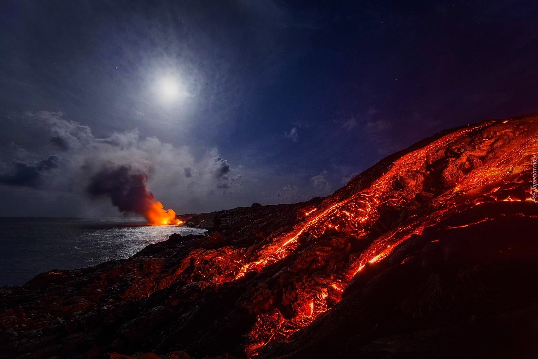Edytor tapety: Wulkan, Lawa, Morze, Noc