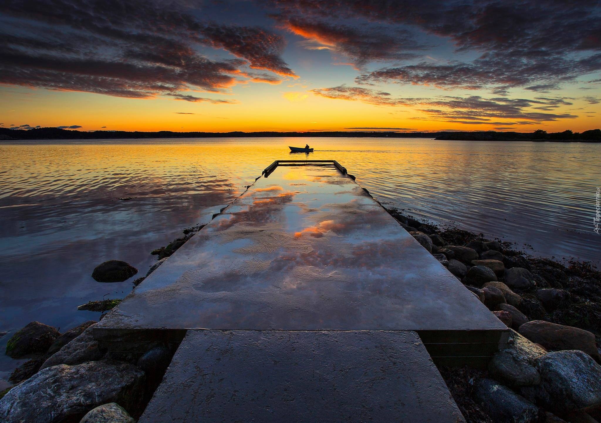 Edytor tapety: Zachód, Słońca, Pomost, Jezioro, Wędkarz