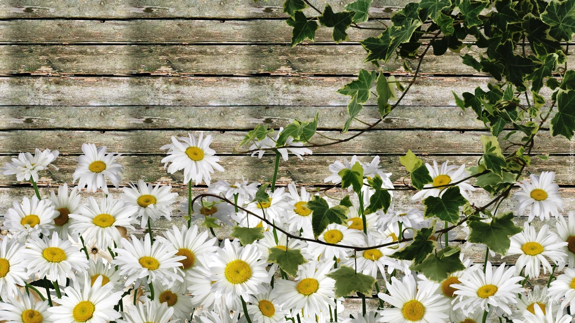 Edytor tapety: Margerytki, Bluszcz, Deski