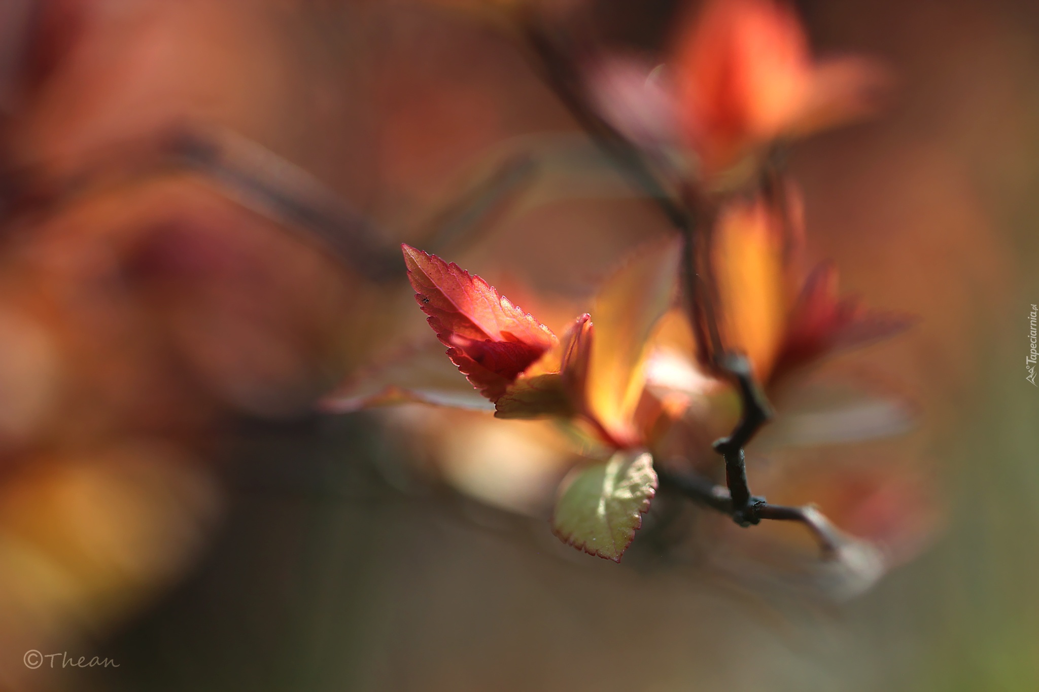 Edytor tapety: Czerwone, Liście, Gałązka, Wiosna