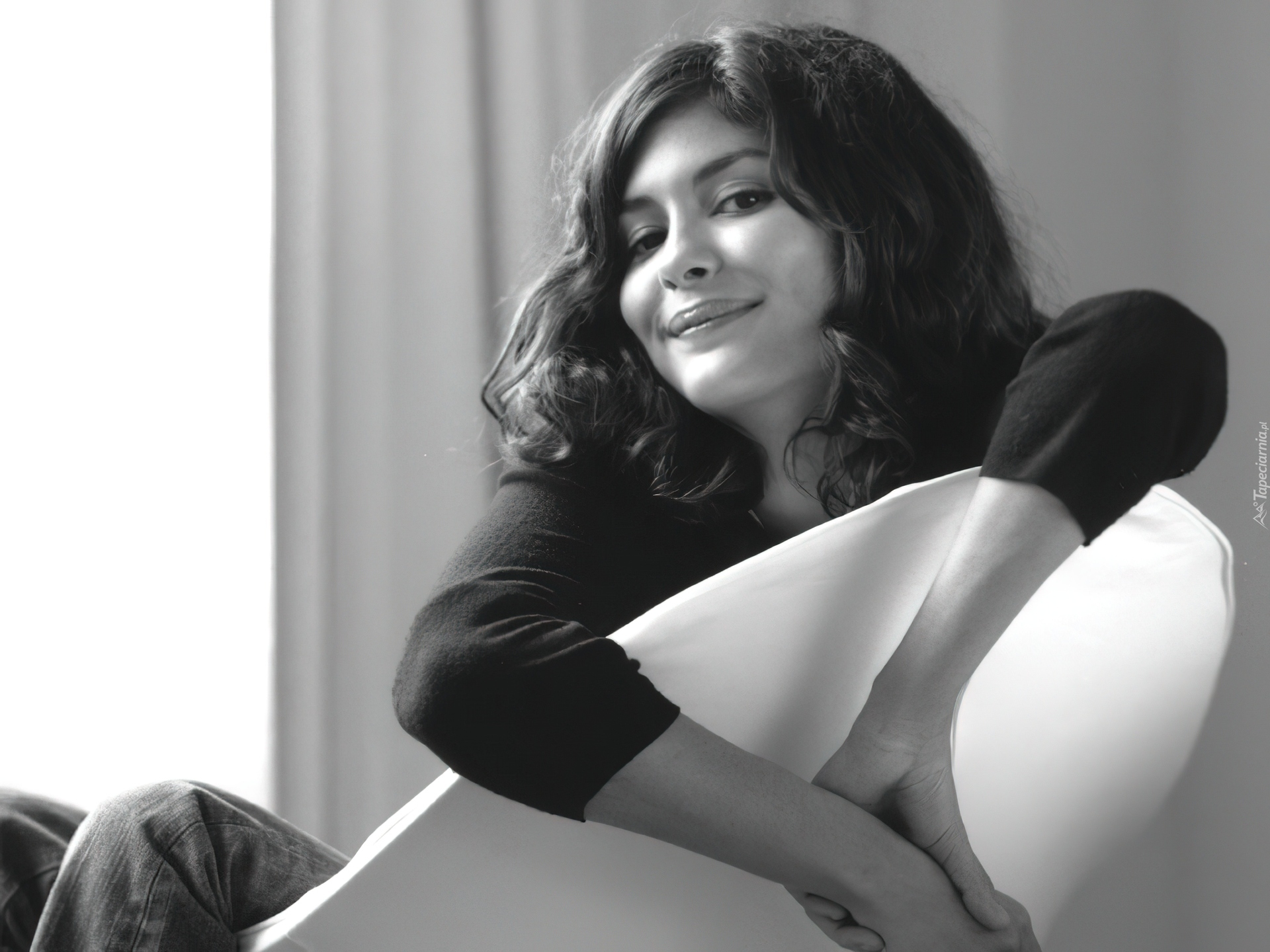 Edytor tapety: Audrey Tautou, czarna bluzka, biały fotel