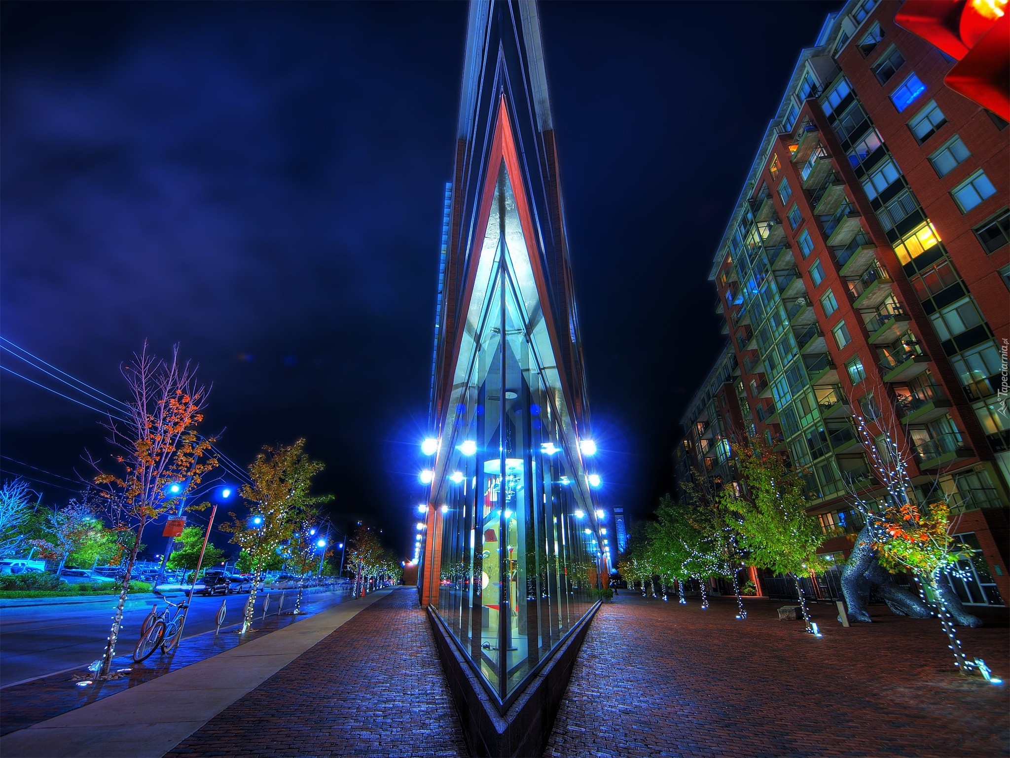 Edytor tapety: Toronto, Noc, Ulica. Latarnie