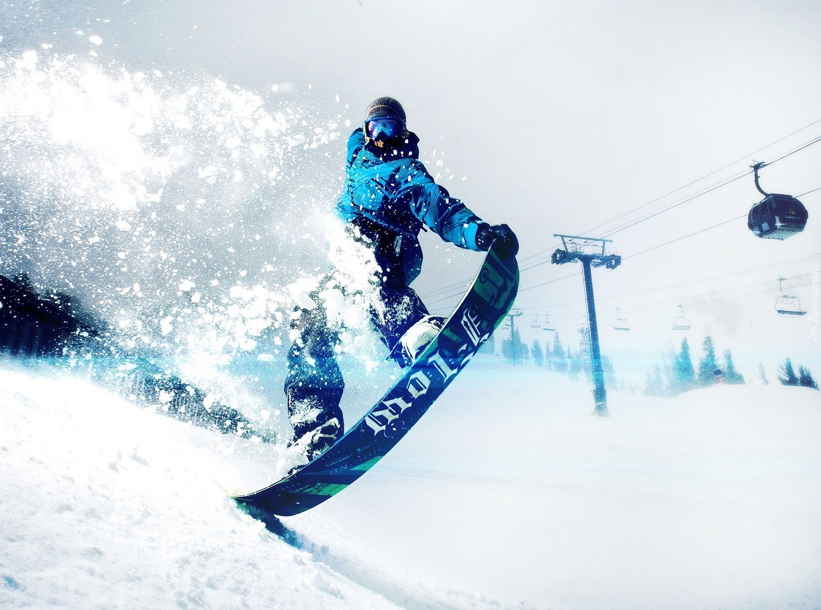 Edytor tapety: Snowbording, Zima, Śnieg, Wyciąg, Wagoniki
