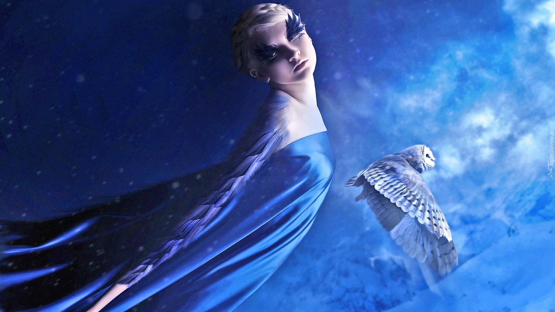 Edytor tapety: Atena, Kobieta, Sowa