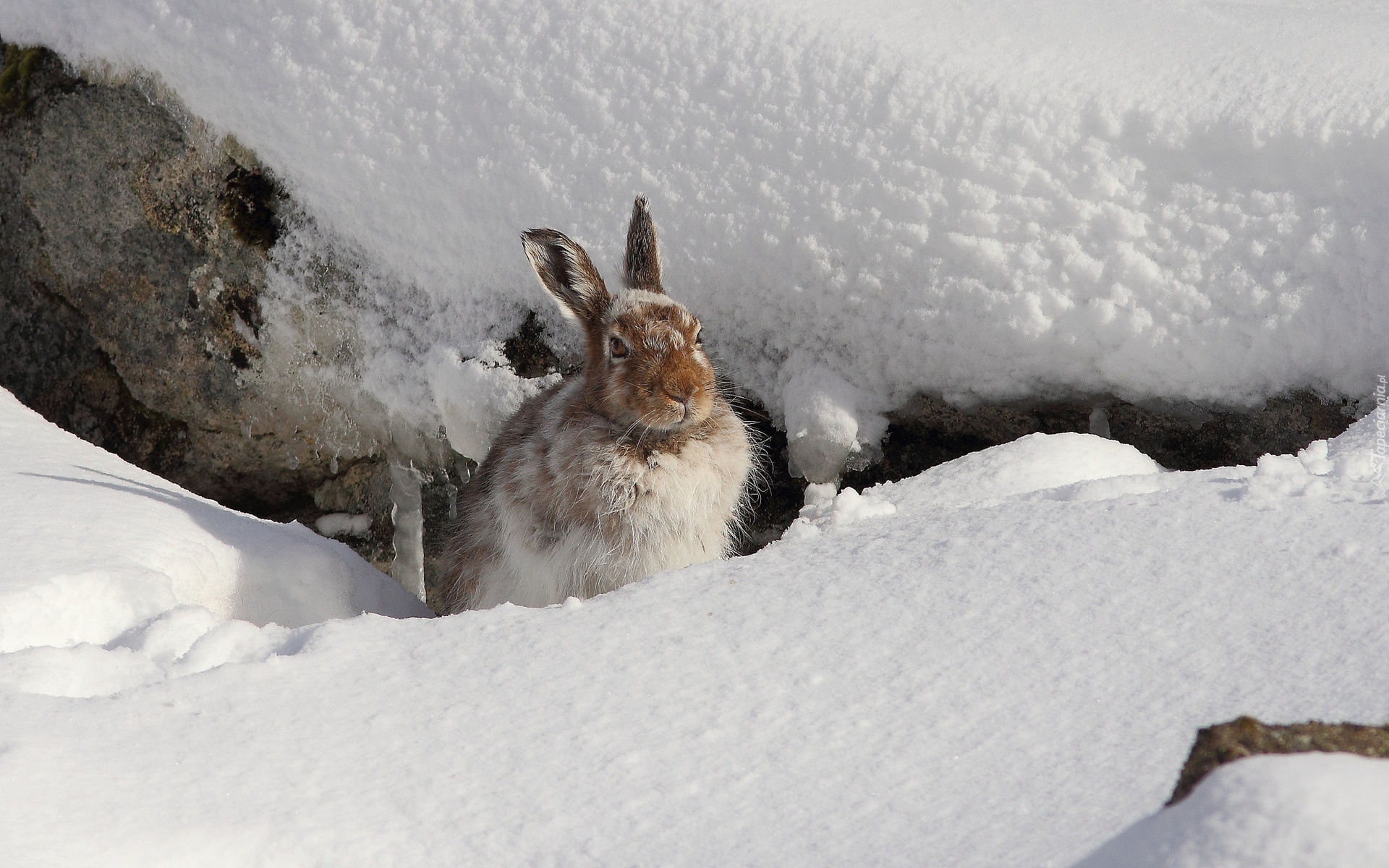 Edytor tapety: Zając, Skała, Śnieg, Zima