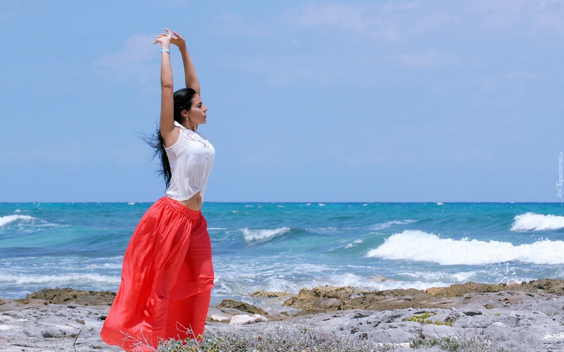 Edytor tapety: Dziewczyna, Morze, Fale, Plaża, Spacer