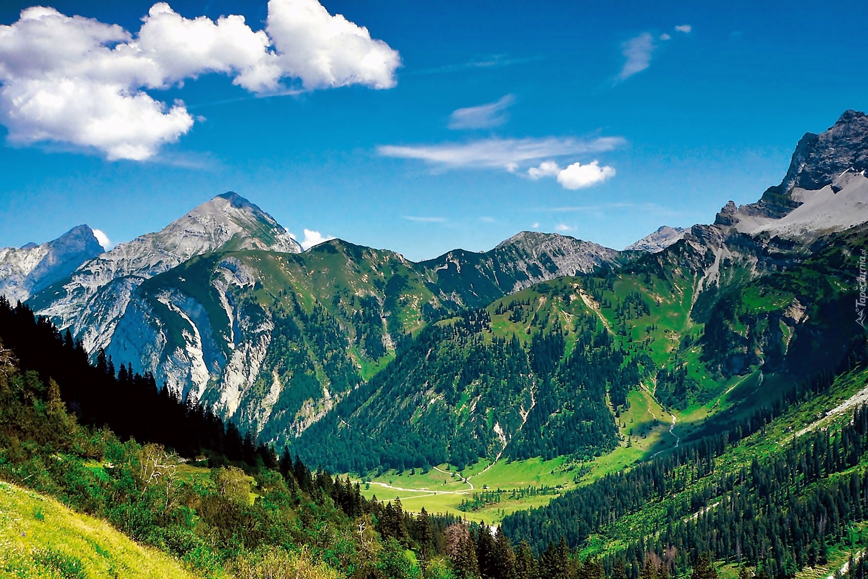 Edytor tapety: Tyrol, Góry, Lasy, Łąki, Dolina