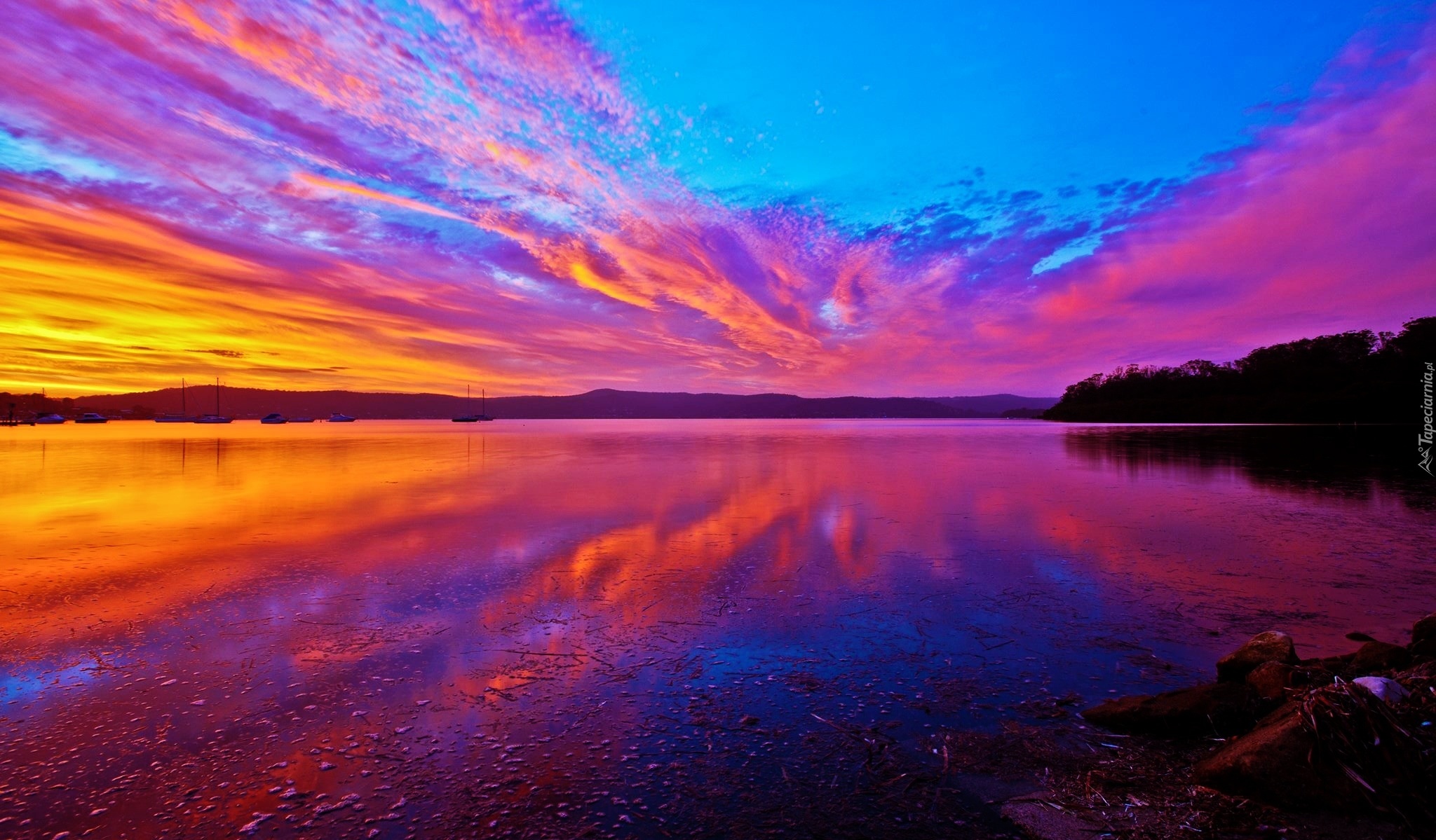 Edytor tapety: Zachód, Słońca, Jezioro, Chmury